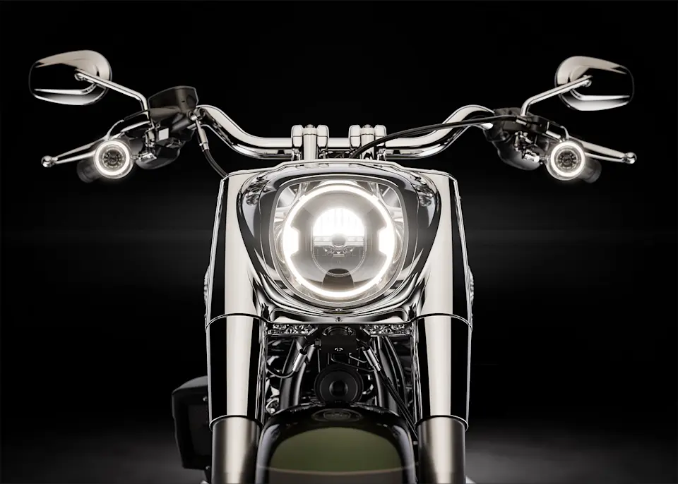 Wenn Du Dich lieber an Dein Umfeld anpasst, ist die 2026er Fat Boy nicht das richtige Motorrad für Dich. Das charakteristische Chrom-Scheinwerfergehäuse, die markanten Linien und der einzigartige Auftritt machen jede Ankunft zu einem besonderen Ereignis.