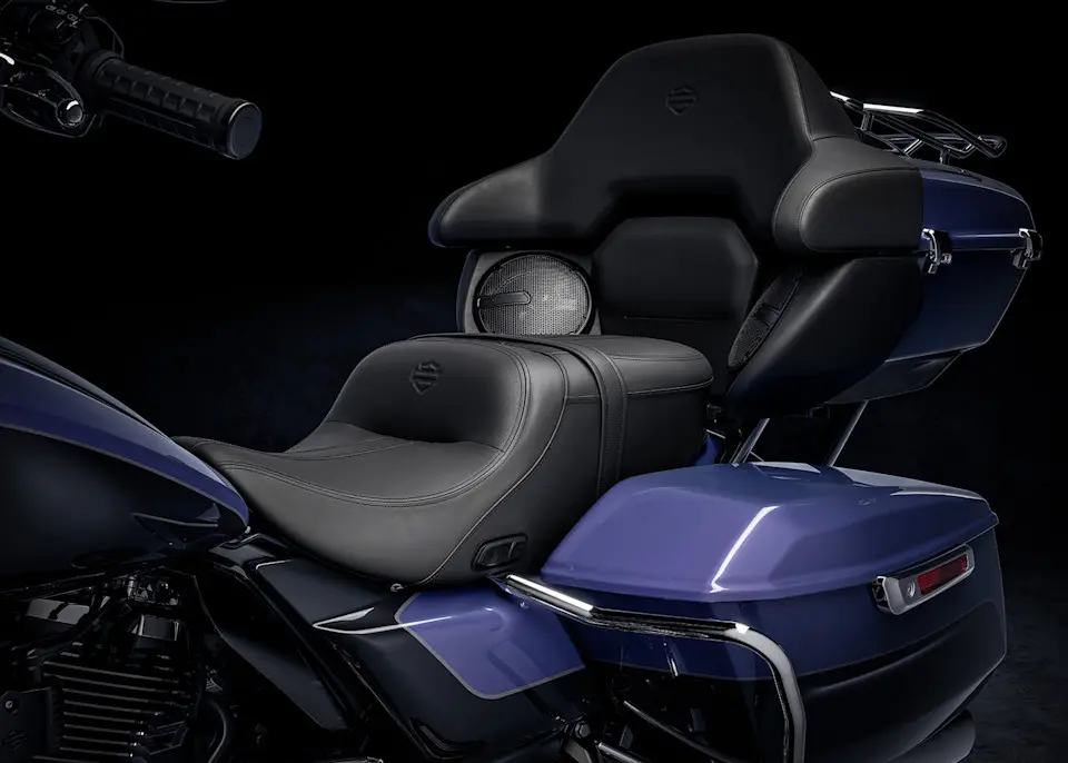 Das Grand Tour-Pak hat für 2026 ein neues Design erhalten und integriert jetzt Lautsprecher-Einsätze, bündige LED-Leuchten, eine Sozius-Rückenlehne und einen Gepäckträger für komfortable Fahrten zu zweit und einen klaren, durchgängigen Stil. Der Stauraum und der Komfort der neuen Road Glide Limited sind unübertroffen.