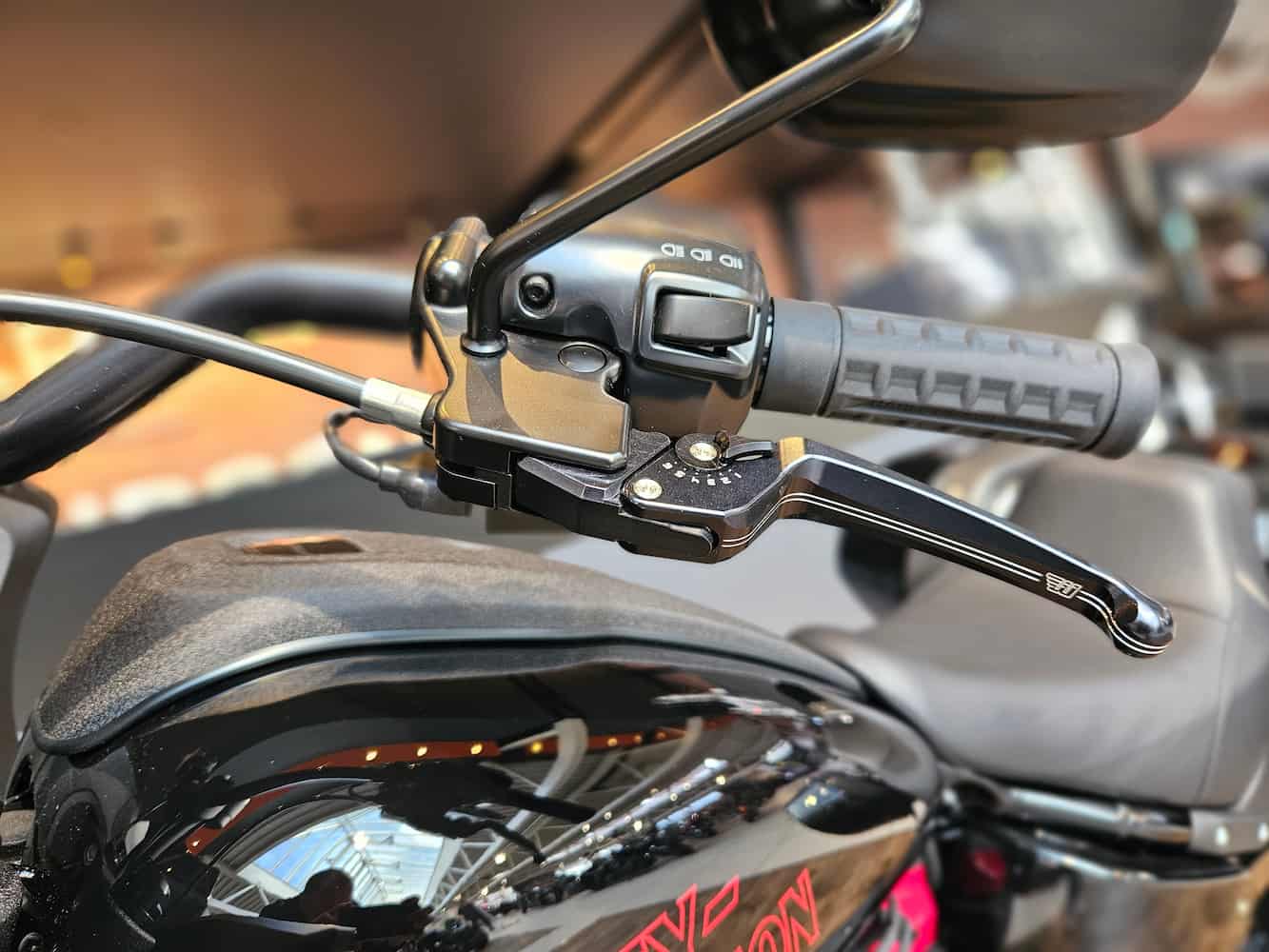 Am Lenker sorgen die verstellbaren schwarzen Hebel von Wunderkind Custom für Präzision und hochwertige Haptik. Technisch wie optisch ein Upgrade – dezent, aber wirkungsvoll.