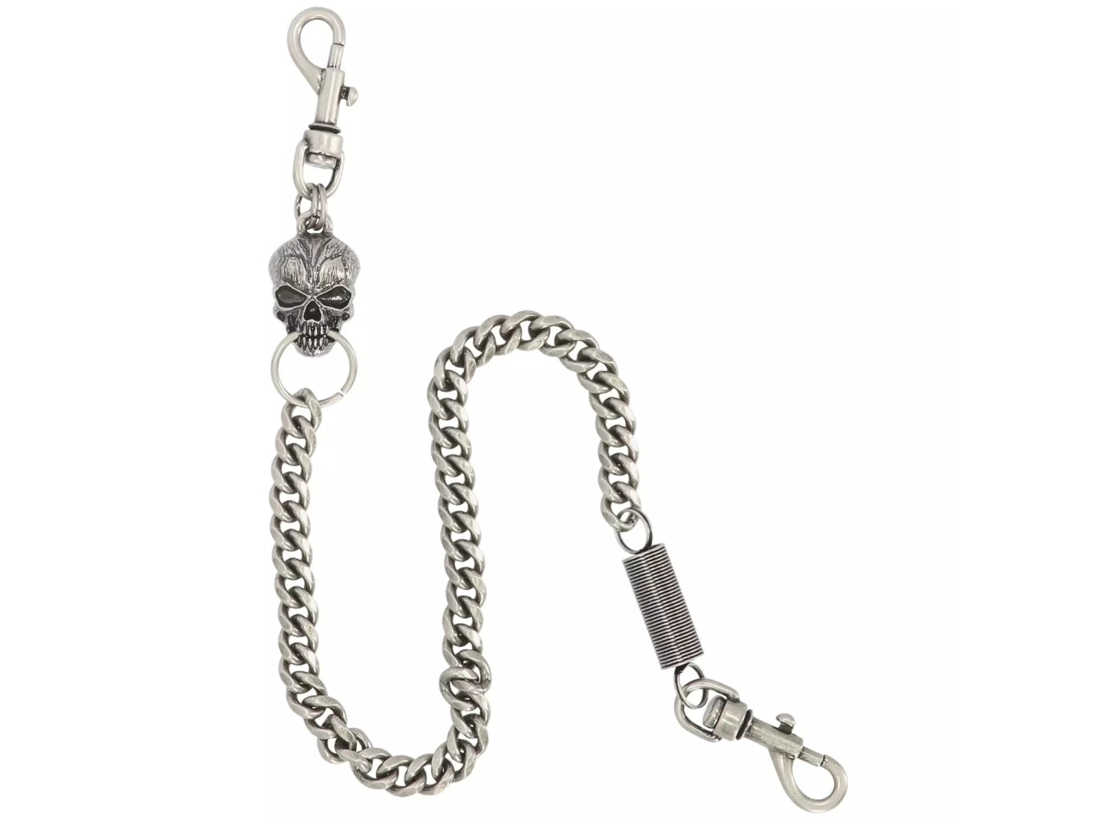 Markant, robust und voll im Biker-Style – diese Wallet Chain kombiniert einen auffälligen Skull mit funktionaler Federverbindung für maximale Beweglichkeit.