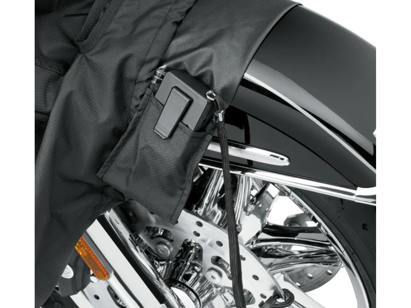 - Einstellbare Zugbänder: Sichern die Plane sicher um das Bike, mit einem korsettartigen Festzurrsystem entlang des Rückgrats für eine perfekte Passform.