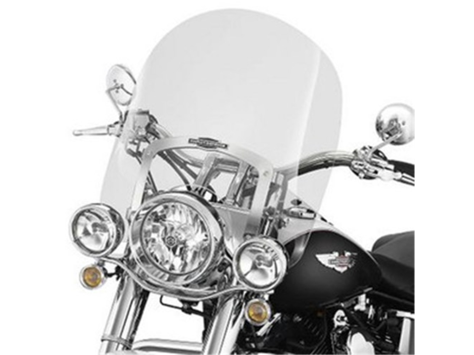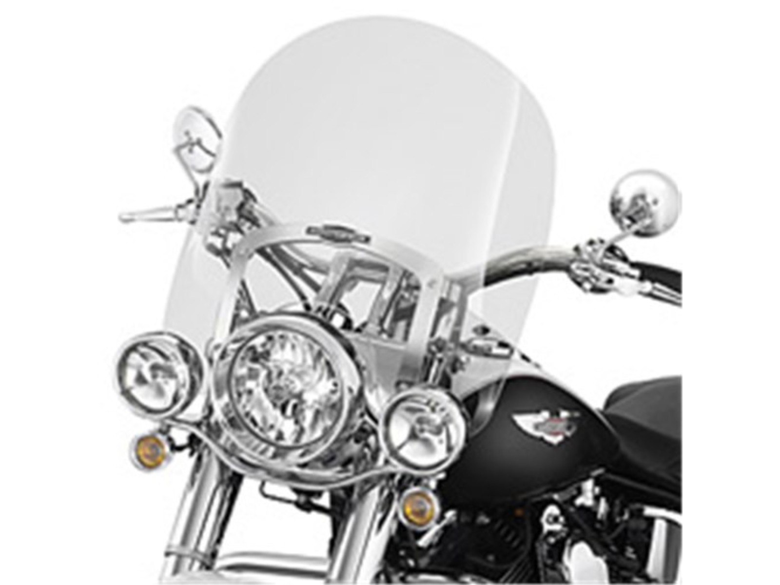 Diese einteilige Windschutzscheibe ist aus gehärtetem, kratzsicherem Polycarbonat gefertigt und verfügt über eine hufeisenförmige Haltestrebe im Nostalgie-Look mit stilisiertem Bar & Shield® Logo. Die hochglanzpolierten Montagehalterungen sind mithilfe der mitgelieferten Montageteile leicht zu befestigen, und nach dem Einbau kann die Windschutzscheibe ohne Werkzeug innerhalb weniger Sekunden abgenommen und wieder angebracht werden. H-D Detachables Windschutzscheiben gibt es in 21" und 18" – abgestimmt auf das gewünschte Maß an Schutz.