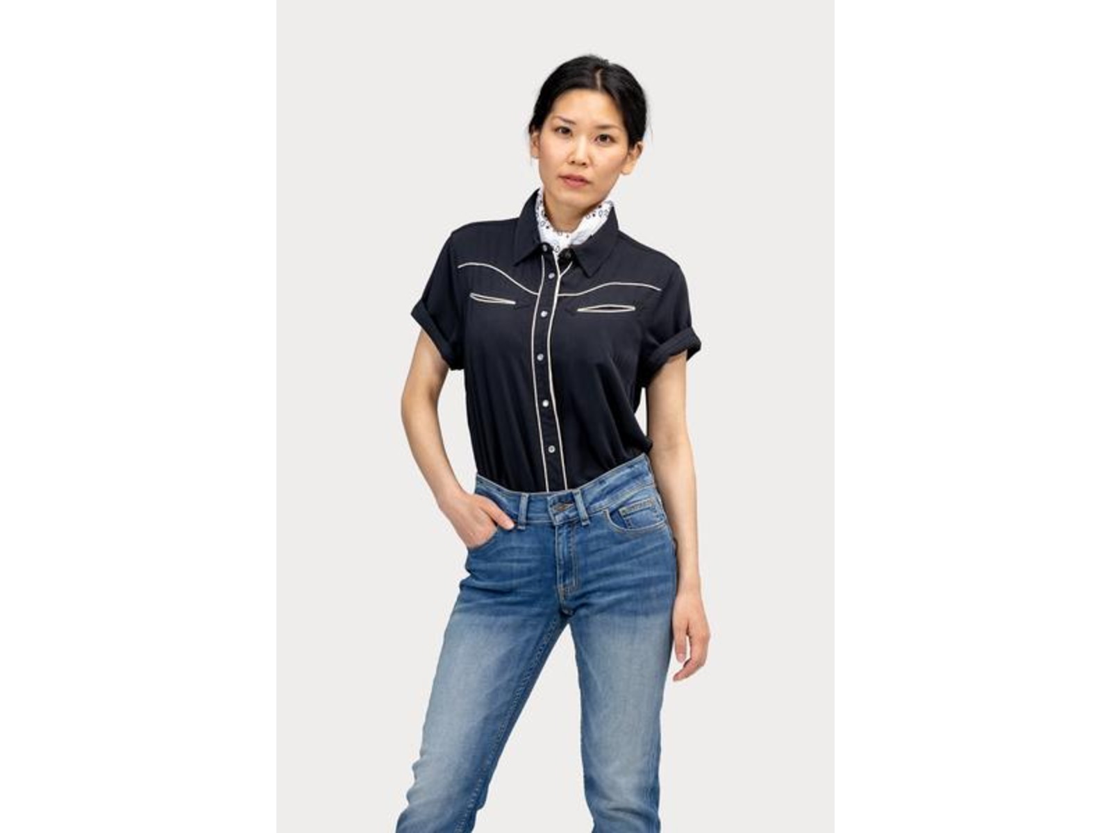 - Design: Bluse im Westernstyle – mit weißen Ziernähten auf der Vorderseite und dem Rücken für einen markanten Look.