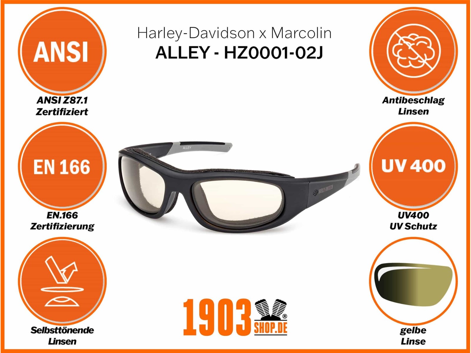 Die Performance Sonnenbrillen von Harley-Davidson sind perfekt auf die Bedürfnisse von uns Bikern abgestimmt. Sinnvolle Funktionen unterstützen Deine Sicht und geben Dir auch bei schlechten Witterungsbedingungen mehr Durchblick. Harley-Davidson arbeitet bei seiner Performance Eyeware Kollektion eng mit dem bekannten Brillenhersteller Marcolin zusammen.