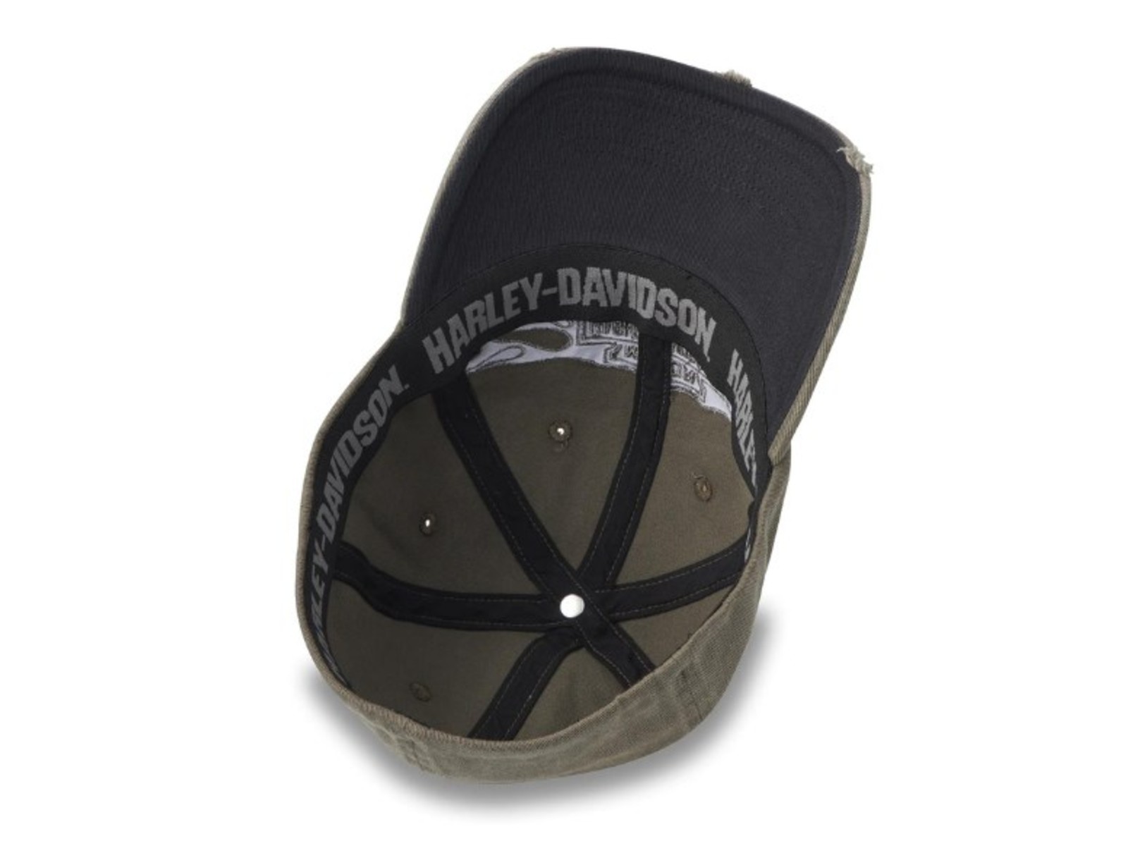 Die Harley-Davidson Cap "Flying Lap Distressed Green" bietet eine perfekte Kombination aus Komfort und markantem Stil. Diese Cap ist der ideale Begleiter für alle Harley-Enthusiasten, die Wert auf hochwertige Materialien und ein authentisches Design legen.