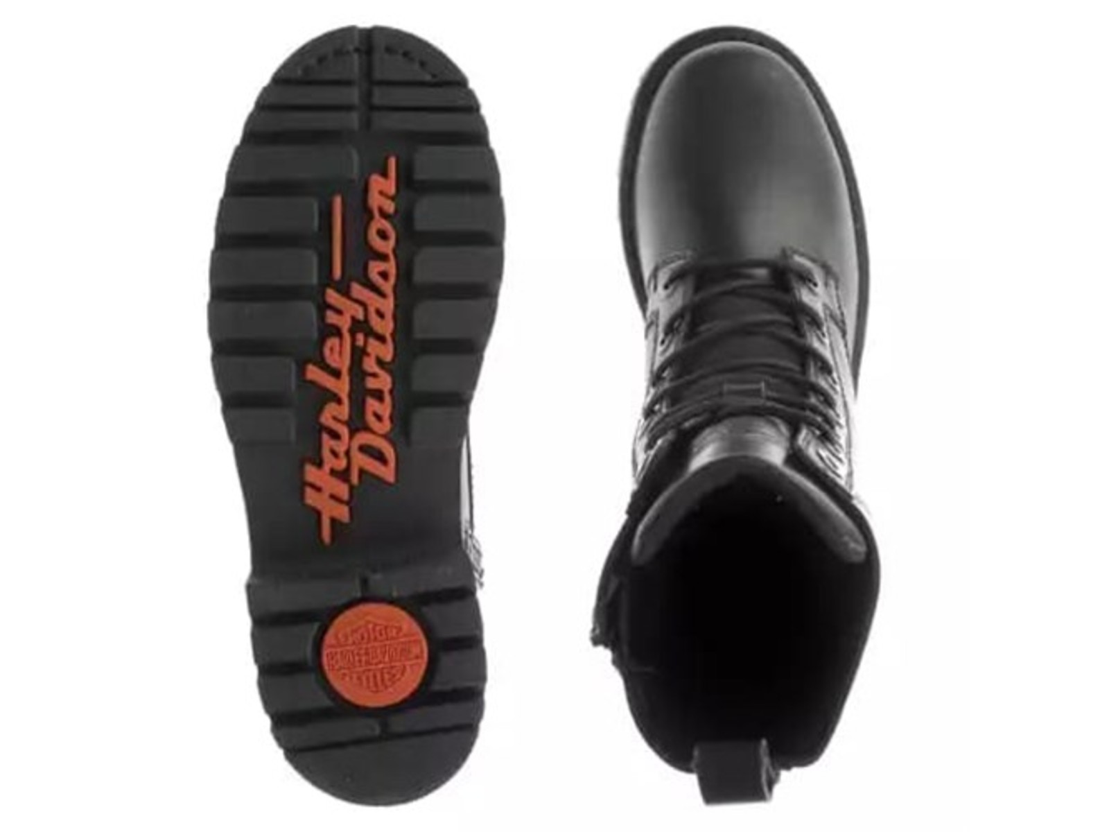 - Ein klassisches orangefarbenes Bar & Shield®-Logo ist in die Ferse eingearbeitet, und auf der Außensohle ist der Schriftzug Harley-Davidson® zu sehen.