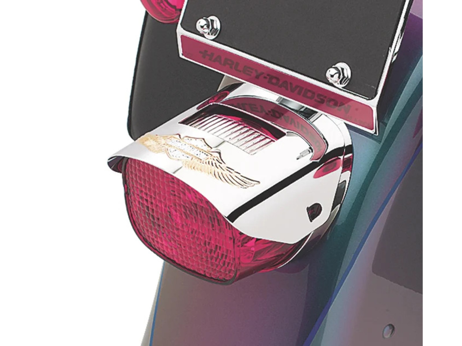 Der hochglänzende verchromte Schirm verleiht Deinem Rücklicht mehr Stil.