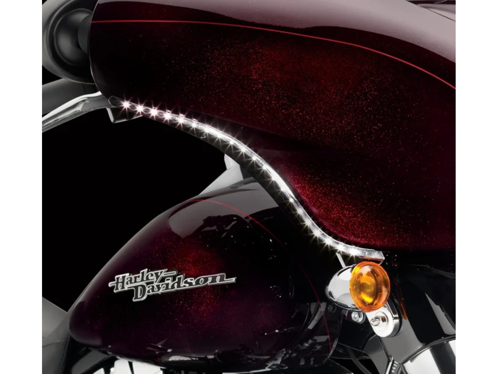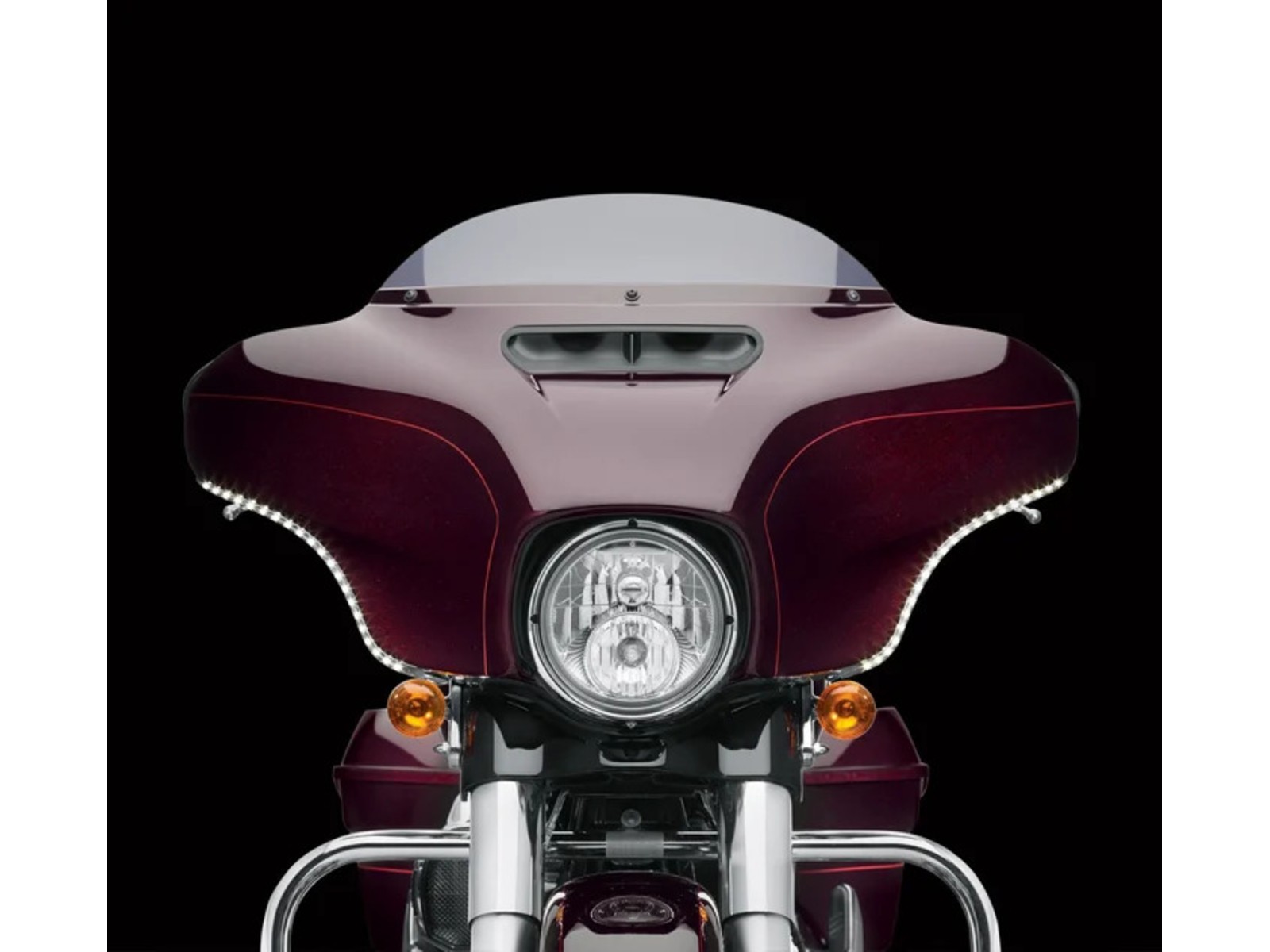 • Das schmale Leuchtenband, das der Kontur der Batwing Verkleidung folgt, fügt der legendären Form des Electra Glide® Modells ein starkes visuelles Element hinzu