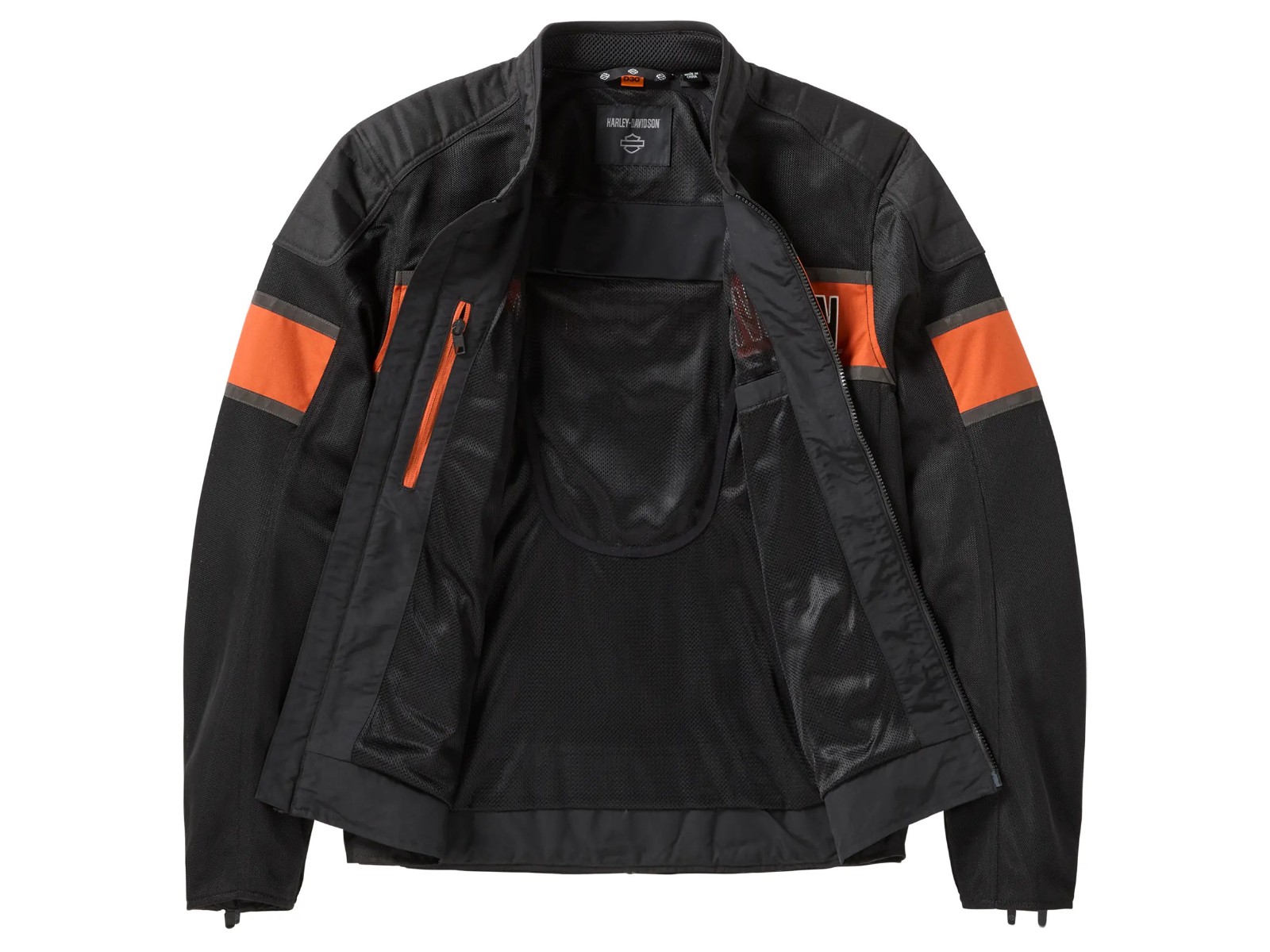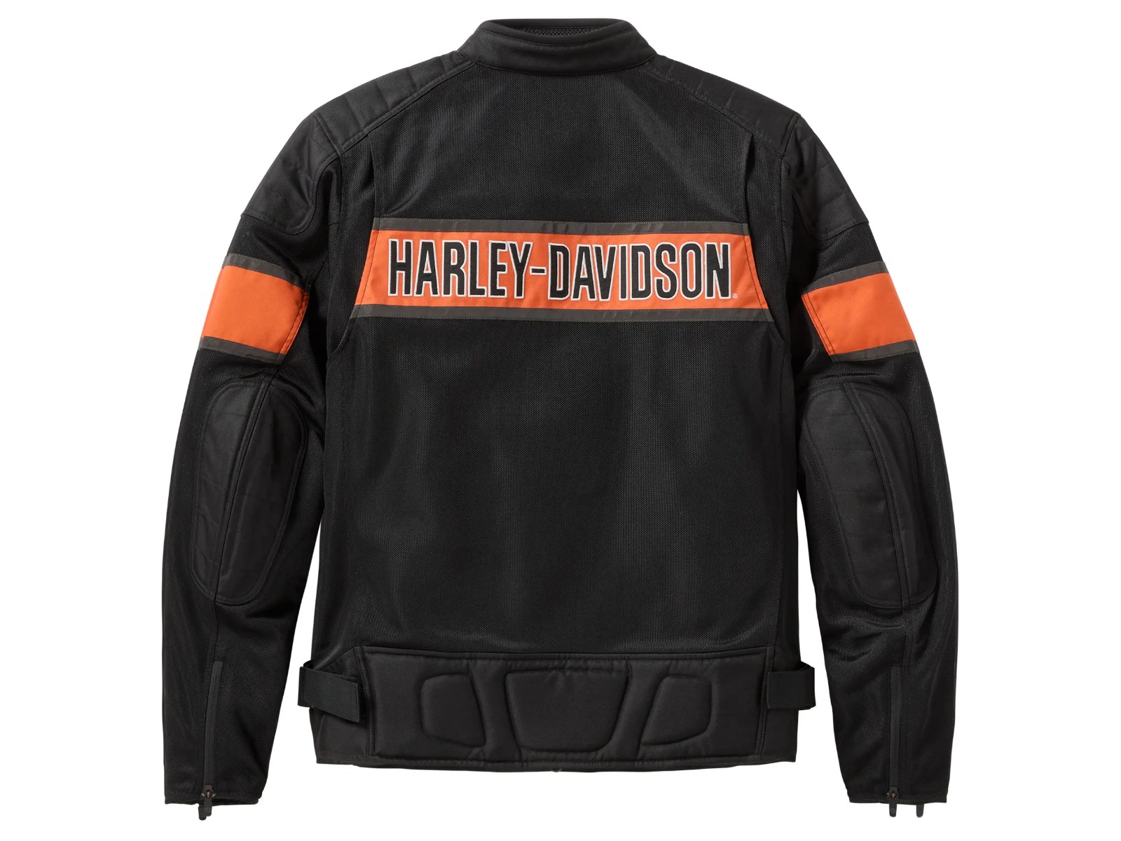 Ein Bestseller, der noch besser geworden ist. So lässt sich unsere neueste H-D® Trenton Mesh-Motorradjacke am besten beschreiben. Wir haben die luftdurchlässige Konstruktion aus Mesh beibehalten, sie jedoch mit D3O® Ghost-Protektoren für leichten Aufprallschutz aufgewertet, mehr reflektierendes Material für bessere Sichtbarkeit hinzugefügt und den Stil aufgefrischt. Diese Motorradjacke für Herren wurde außerdem getestet und zertifiziert, um die Anforderungen an Abrieb-, Reiß- und Nahtfestigkeit zu erfüllen. Ihr kontrastreiches Colorblock-Design präsentiert sich mit gestickten Applikationen auf beiden Seiten für einen markanten, zeitgemäßen H-D-Look.
