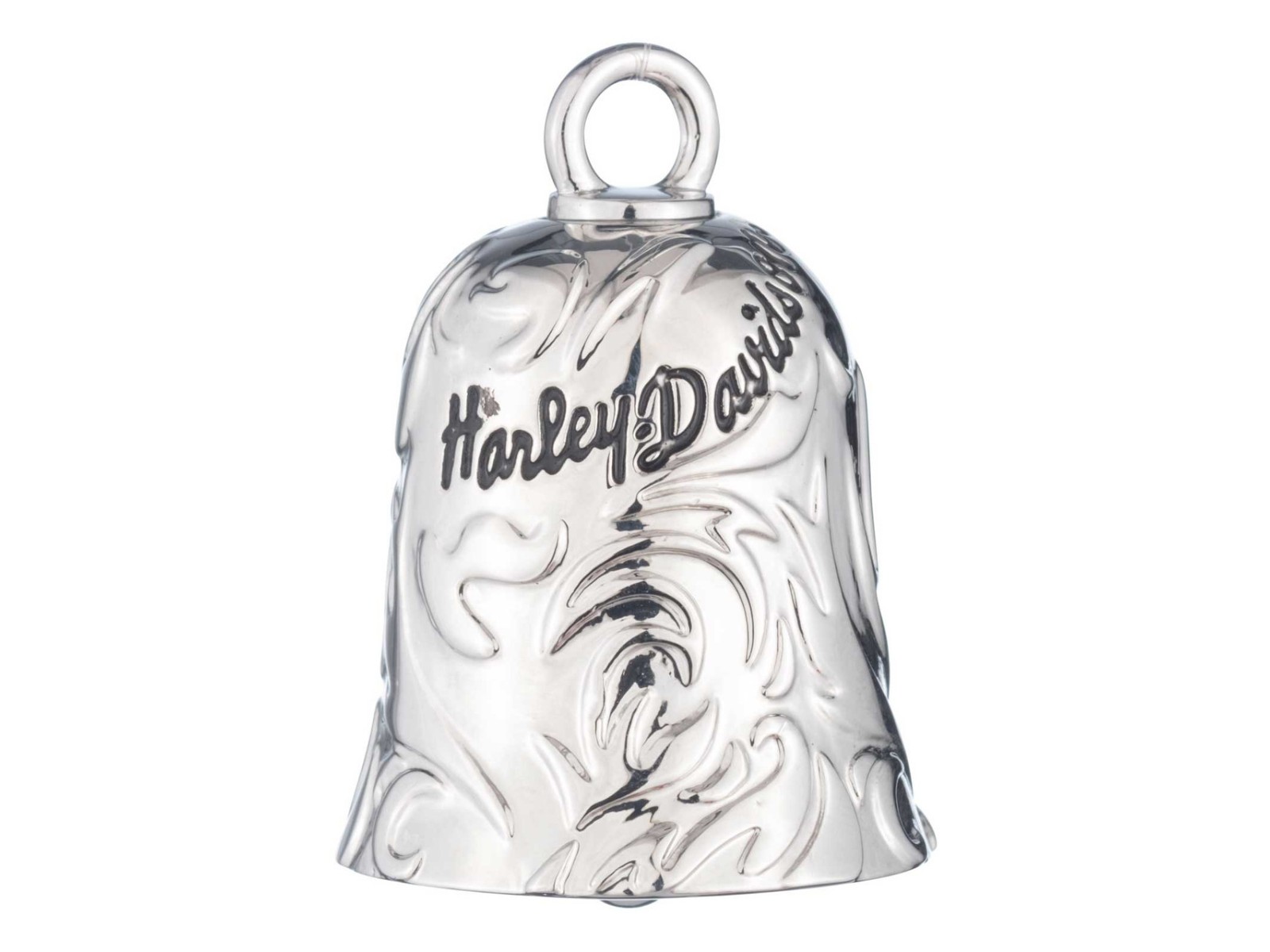 Harley-Davidson Ride Bell. Mit einem wunderschönen Federdesign und graviertem Harley-Davidson® Schriftzug. Hergestellt aus langlebigem Messing mit Silberbeschichtung. Inklusive Seil zum Aufhängen.