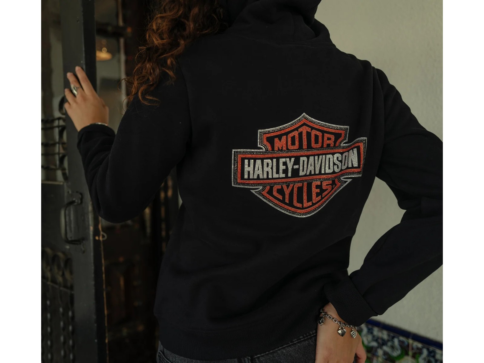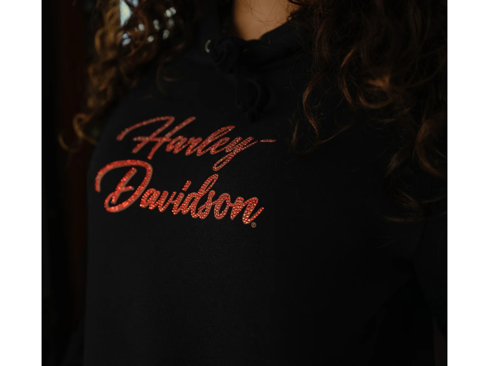 Klassisch trifft Glitzer: Dieser Hoodie bringt den Harley-Spirit mit einem Hauch Glamour in deinen Alltag.