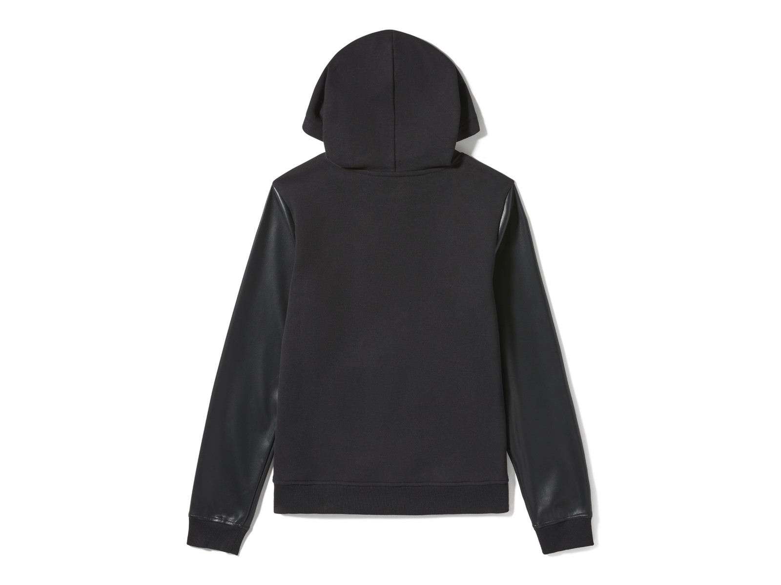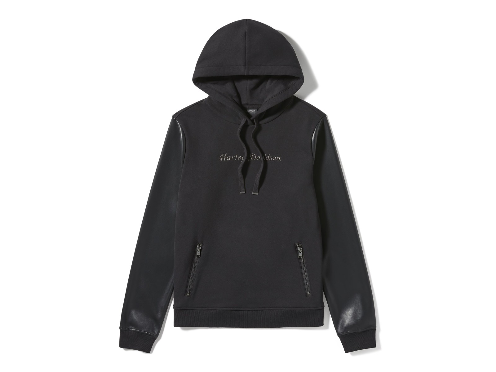 Moderner Materialmix trifft auf markanten Harley-Style – dieser Hoodie kombiniert lässigen Komfort mit einem coolen Leder-Look.