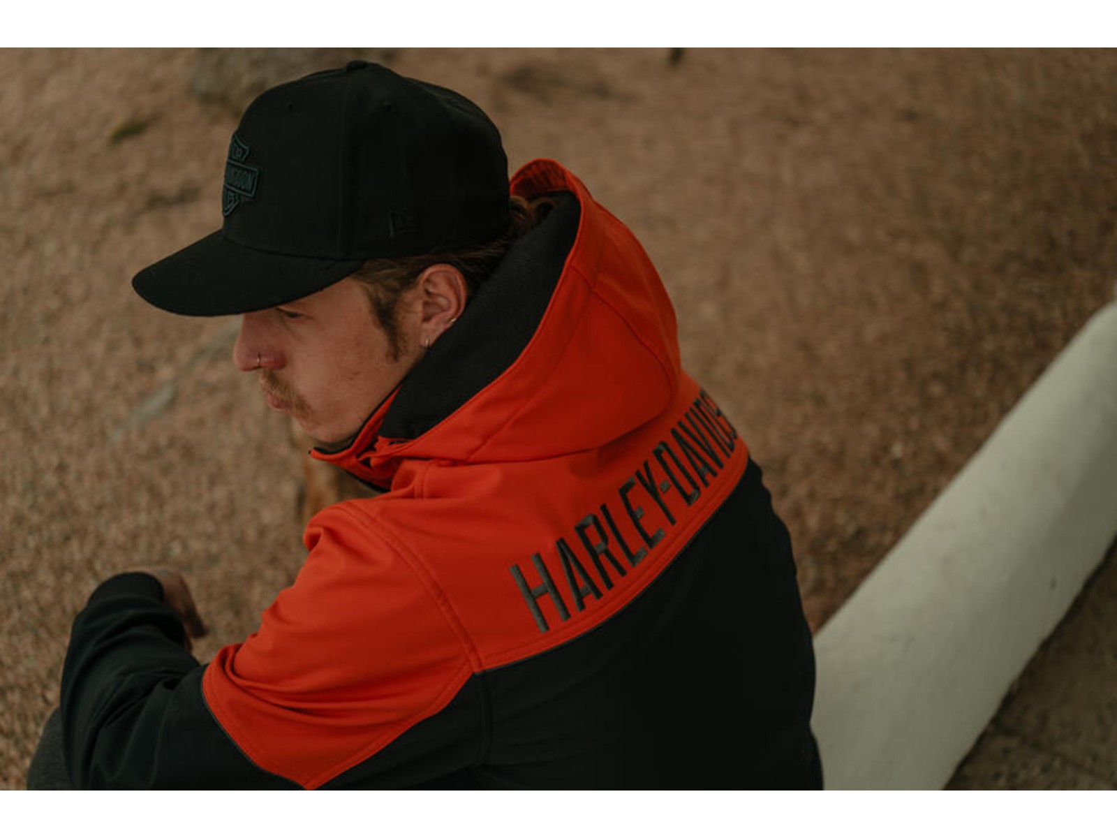 - Branding: Gesticktes Harley-Davidson Logo auf dem rechten Ärmel und Harley-Davidson Schriftzug auf der Vorderseite und Rückseite