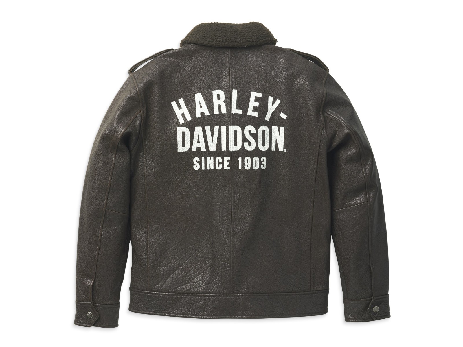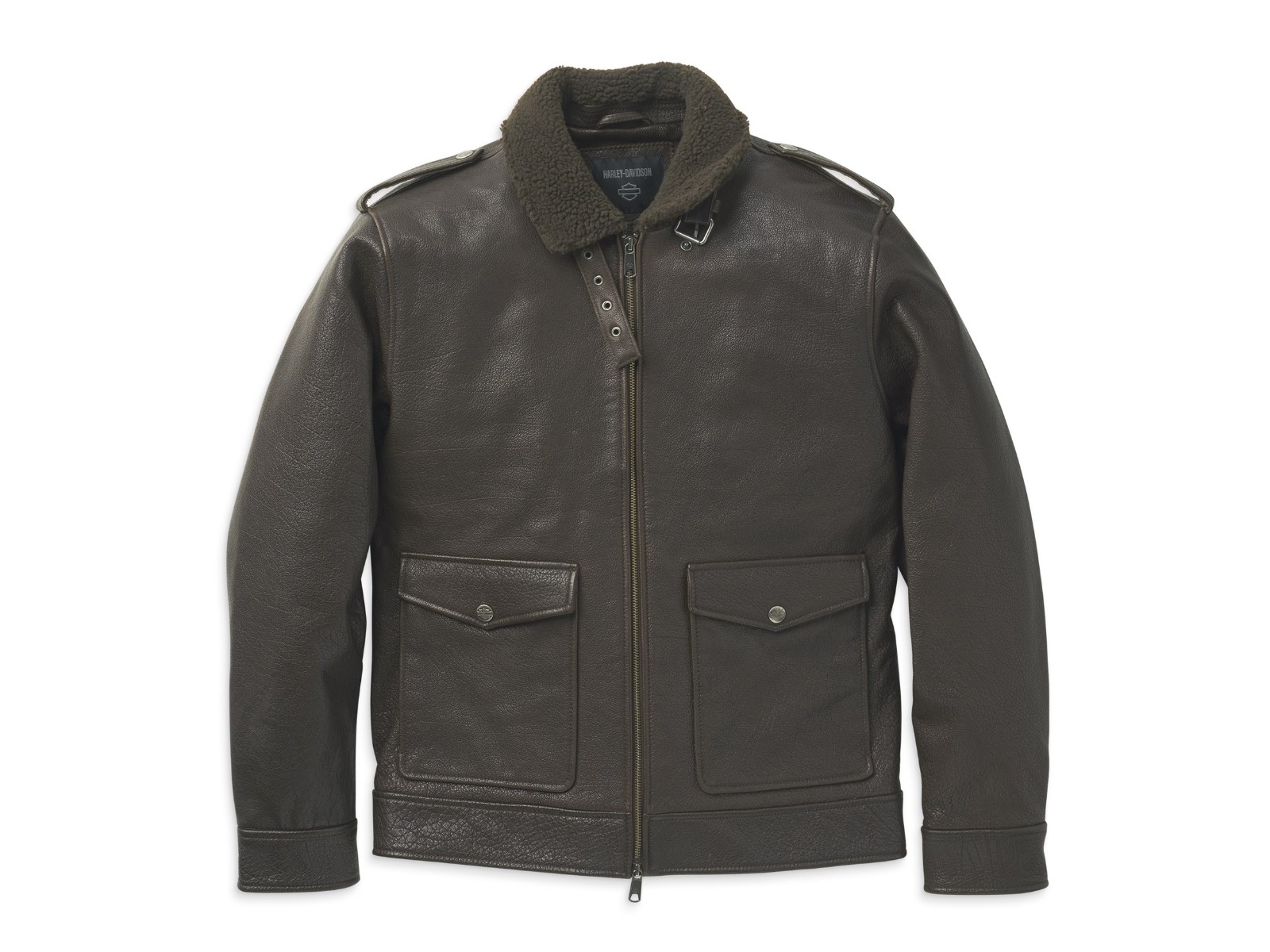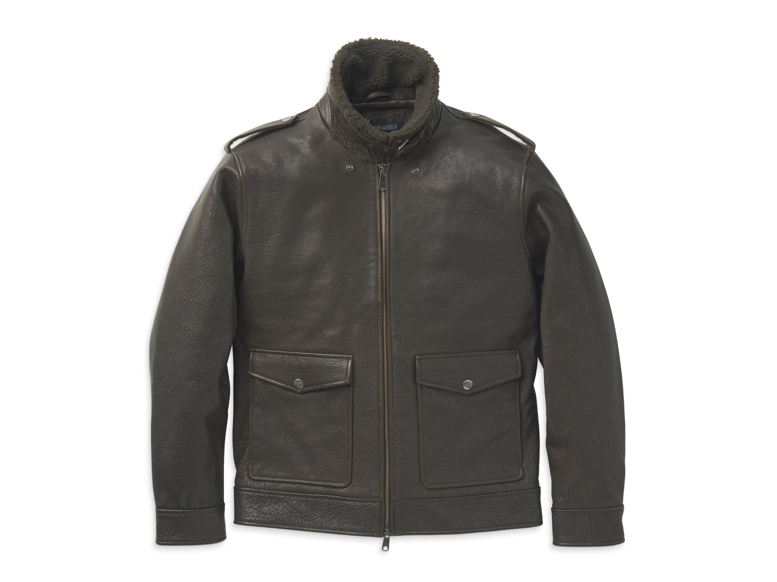 • Materialien: Buff Rub Off Büffelleder 1,2-1,3 mm. Kragen: 100 % Polyester-Sherpa. Futter: 100 % Polyester-Taft.