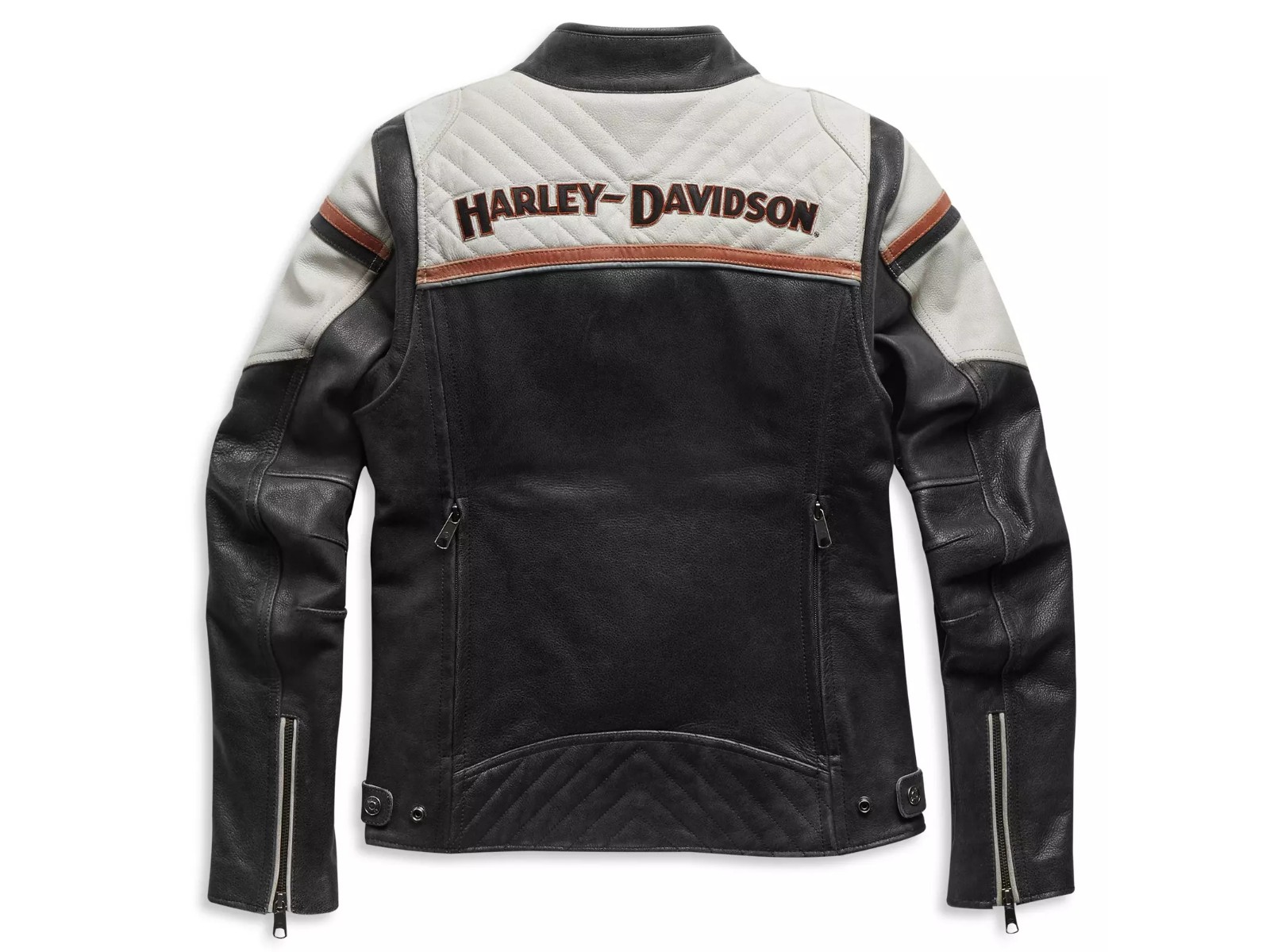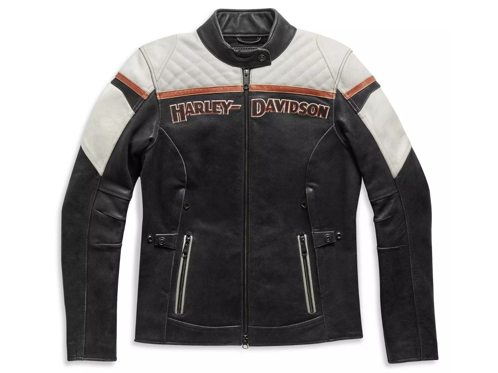 Die H-D Triple Vent Miss Enthusiast Lederjacke von Harley-Davidson vereint zeitlosen Stil mit modernen Funktionalitäten, um dir sowohl auf dem Bike als auch in der Freizeit einen großartigen Auftritt zu bieten. Hergestellt aus echtem Rindsleder, bietet diese Jacke nicht nur Schutz, sondern auch Komfort und eine optimale Temperaturregulierung.
