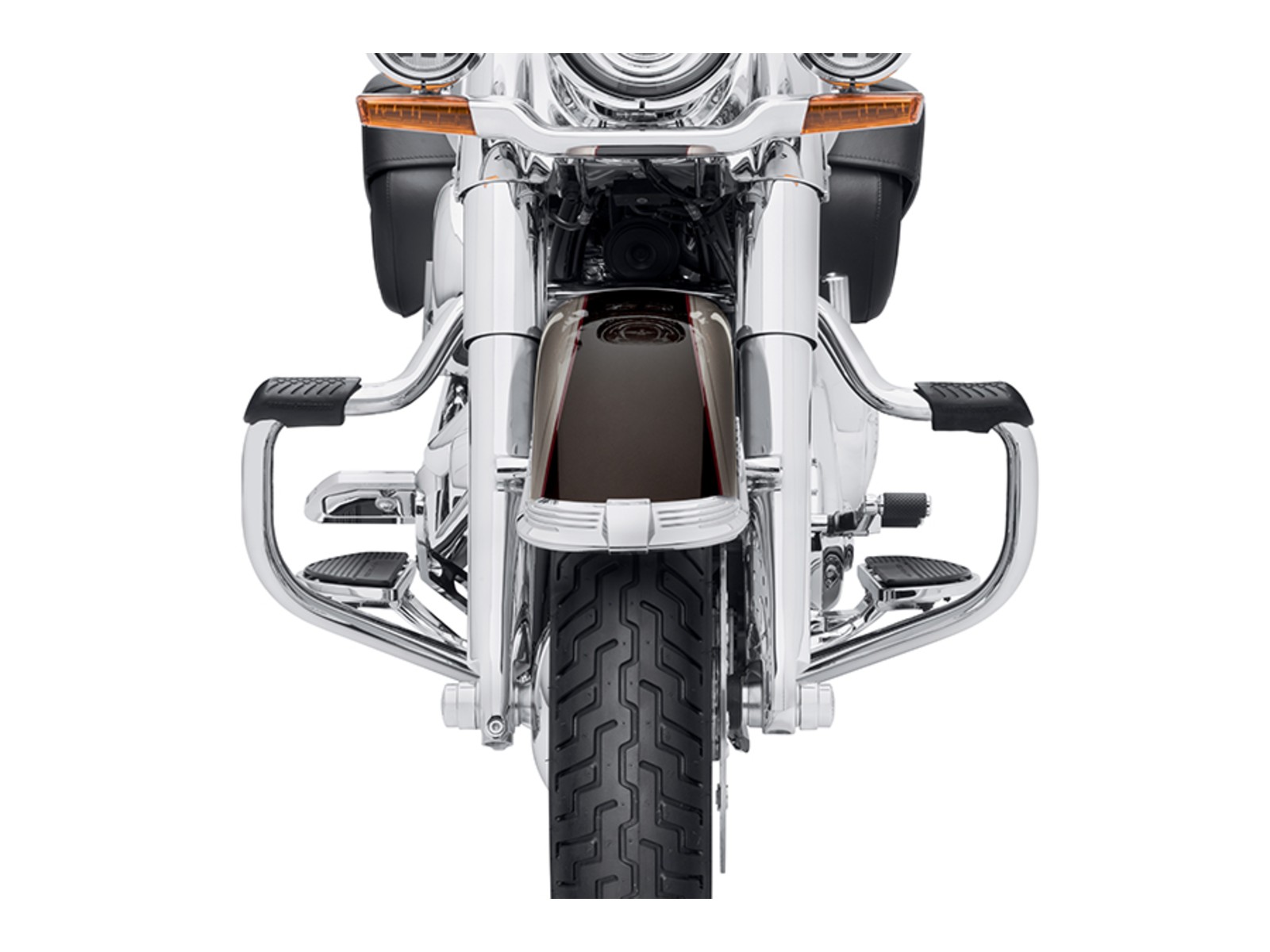 Kombinieren Sie klassische Form und moderne Funktionalität zu einem Motorschutz mit Finesse. Die fließende Form dieses Motorschutzbügels ergänzt den traditionellen Look des Bikes. In das elegant geschwungene Oberteil wurden Highway Fußrasten integriert. Bei Fahrten auf offener Landstraße bieten die Gummibeläge eine rutschfeste und komfortable Fußauflage. Das Kit mit dem einteiligen Motorschutzbügel beinhaltet alle benötigten Montageteile.
