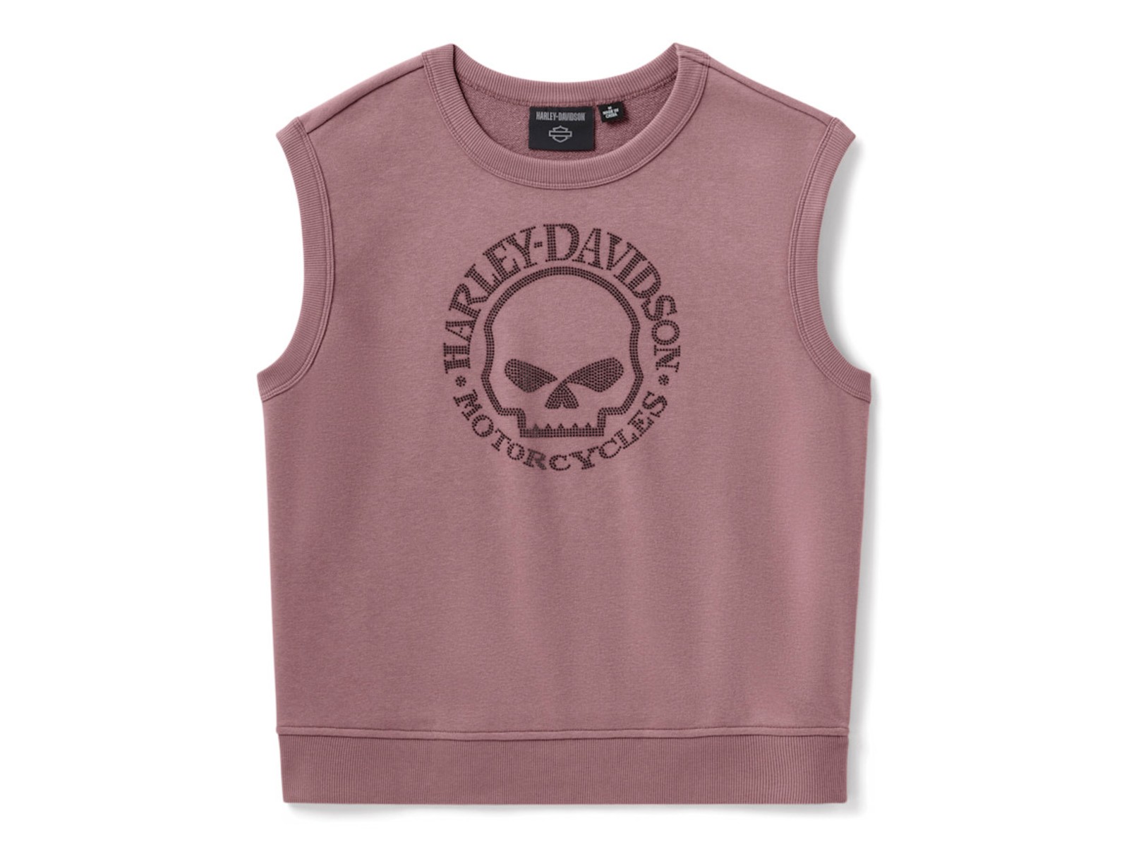 Weniger Stoff, mehr Statement – dieses ärmellose Sweatshirt bringt lässigen Komfort und funkelnden Harley-Style perfekt zusammen.