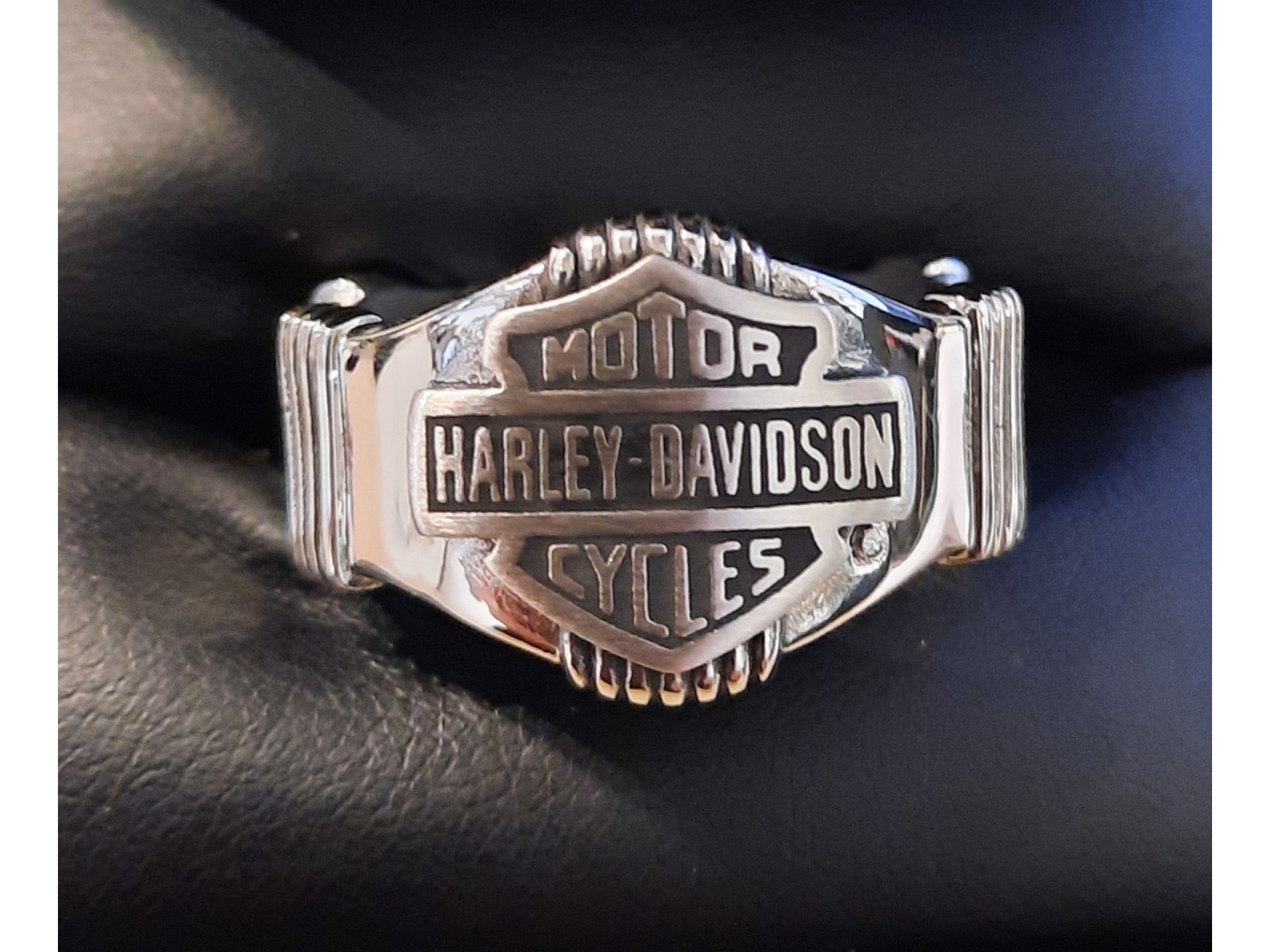 Harley-Davidson Ring mit Edelstahlrahmen – Markanter Biker-Style mit glänzendem Finish