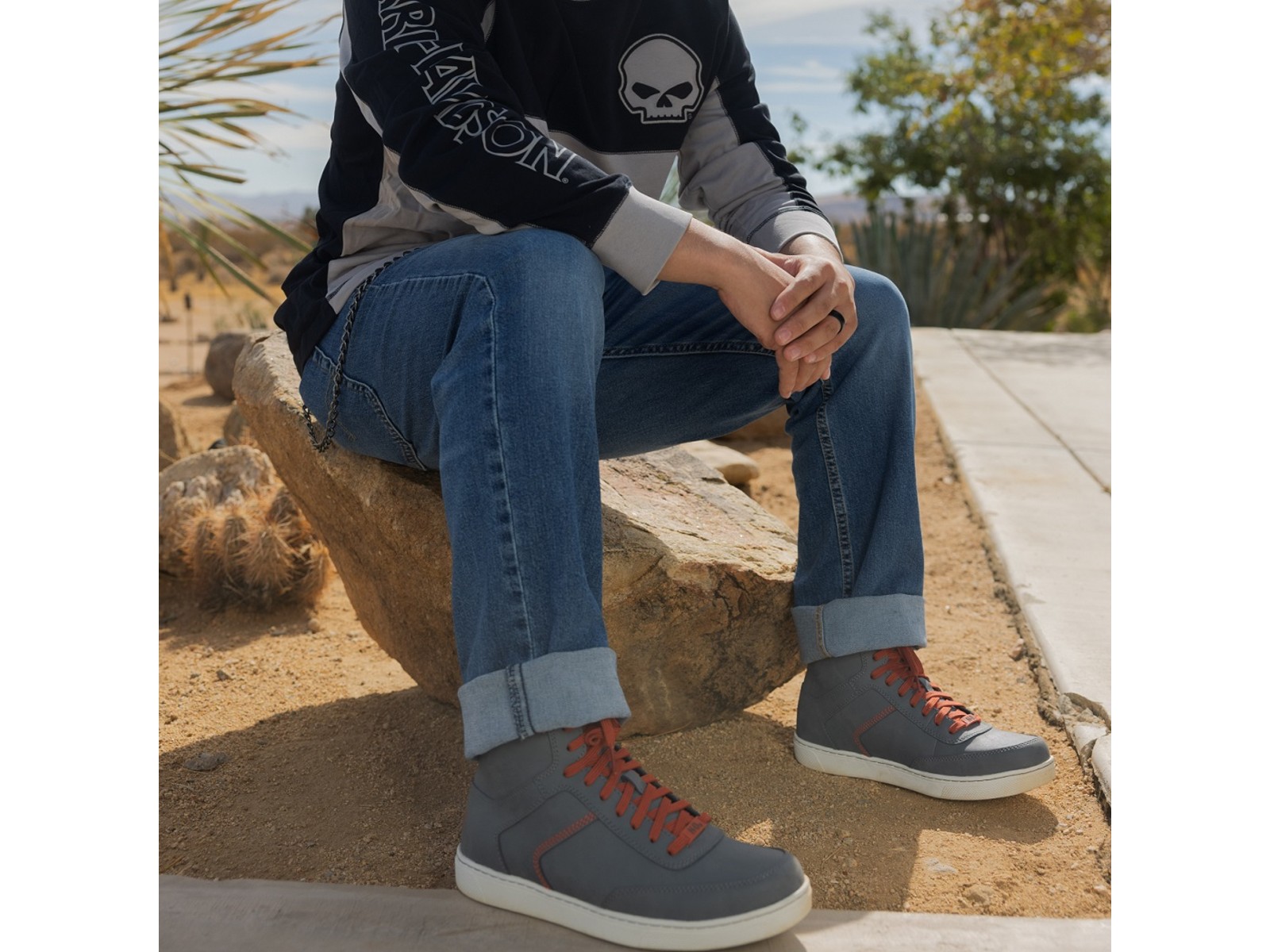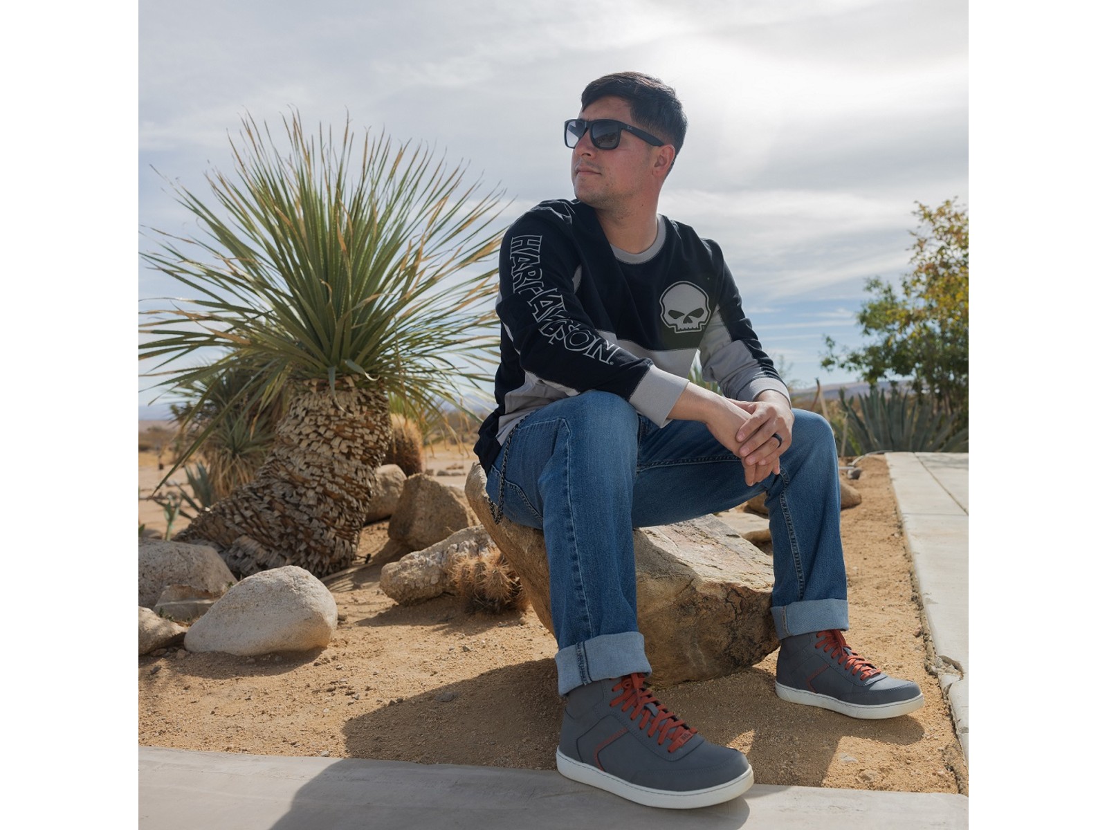 Mit dem Grady CE Grey bringt Harley-Davidson einen stylischen, sportlichen Sneaker auf die Straße, der Performance, Schutz und Alltagstauglichkeit perfekt verbindet.