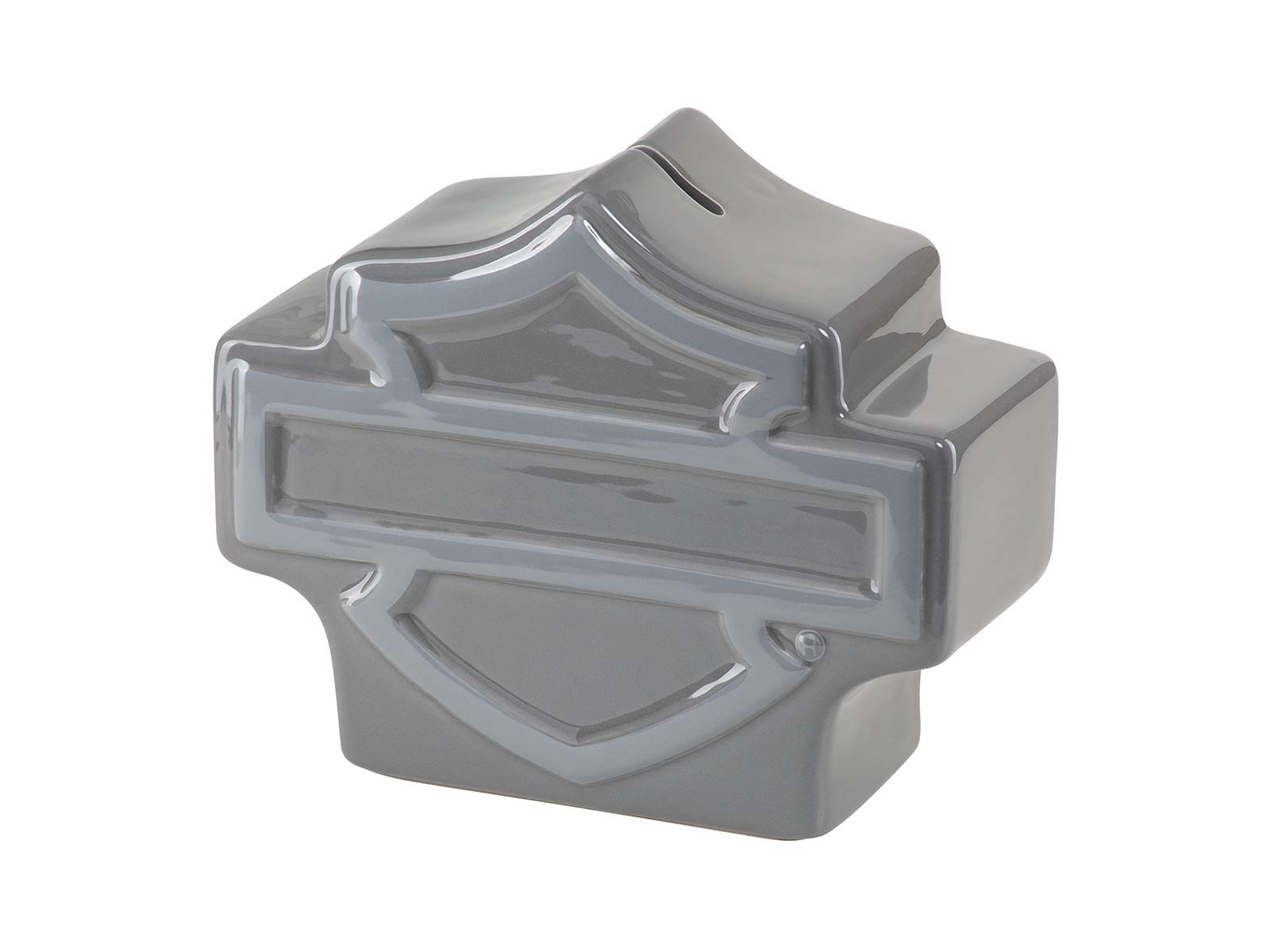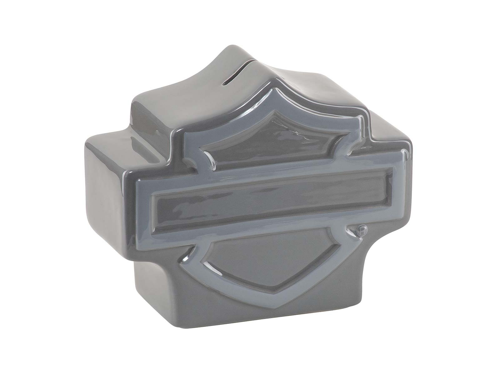 Die Harley-Davidson "Open Bar & Shield" Spardose ist ein Must-Have für jeden Harley-Enthusiasten. Hergestellt aus hochwertiger Keramik und grau glasiert, bringt diese Spardose das ikonische Harley-Davidson Logo direkt in dein Zuhause. Entdecke die herausragenden Merkmale dieser Spardose: