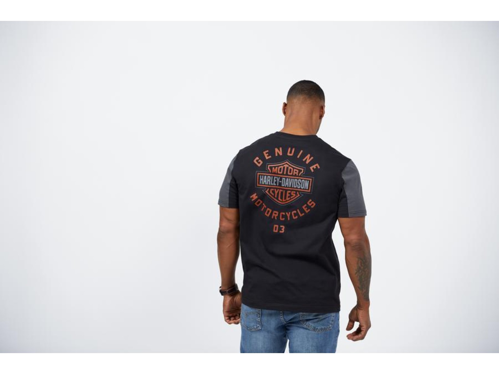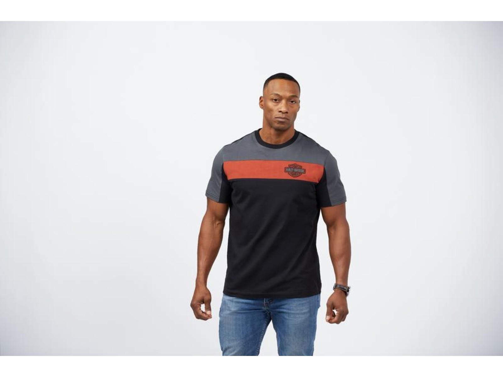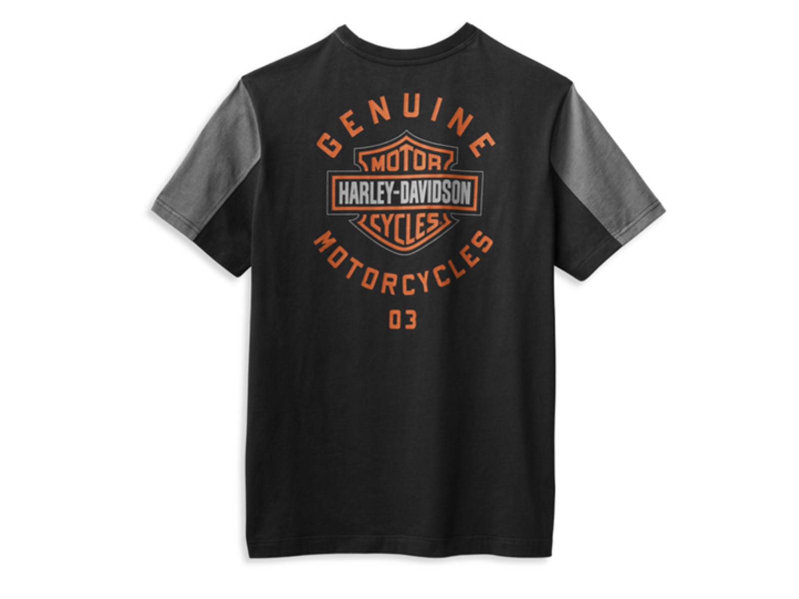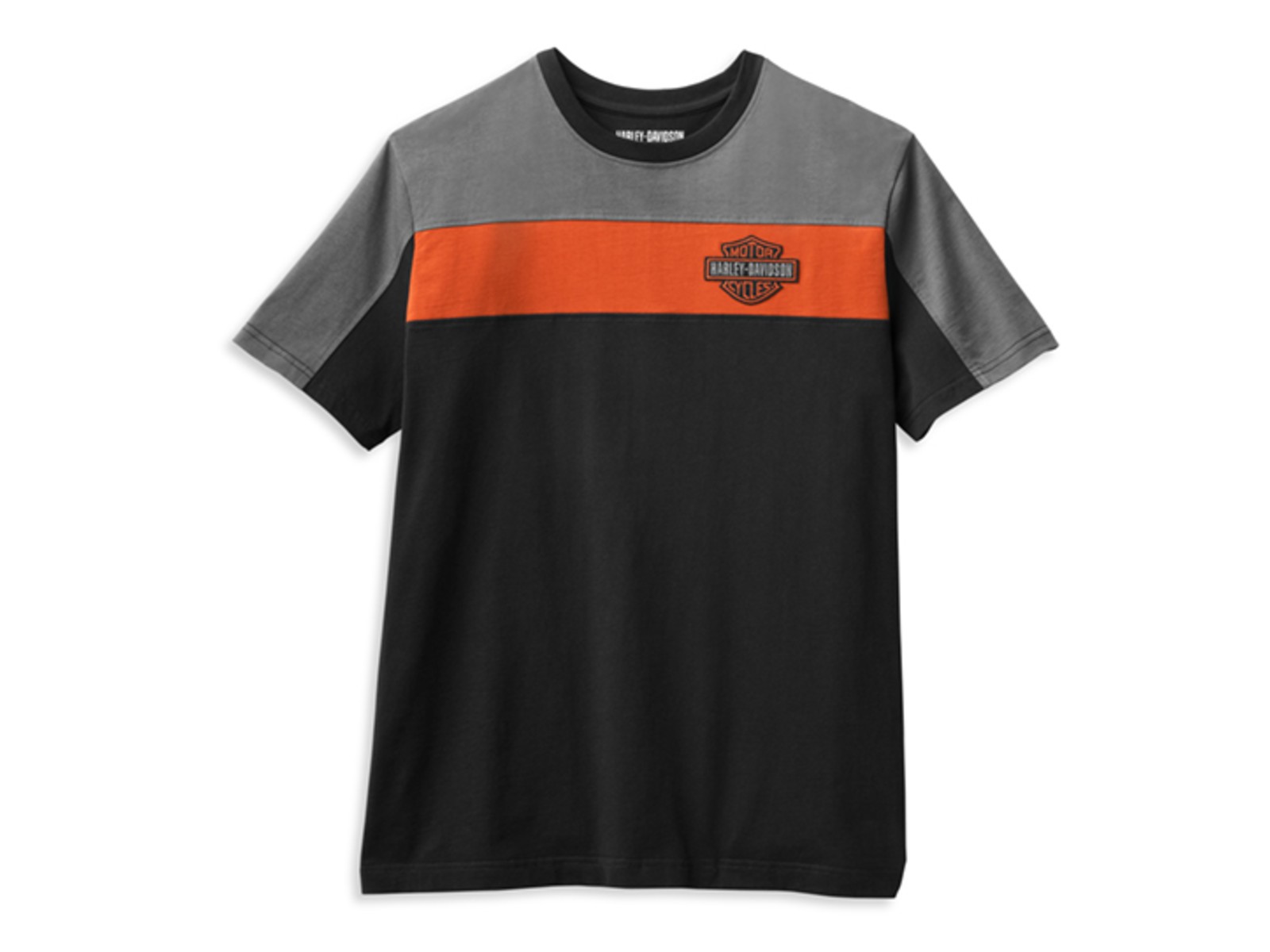 Das Harley-Davidson T-Shirt "Copperblock Logo" bietet eine perfekte Mischung aus Stil und Komfort. Hergestellt aus 100% Baumwolle, garantiert es ein angenehmes Tragegefühl. Die farbliche Absetzung auf der Vorderseite sowie an den Ärmeln sorgt für einen modernen Biker-Look. Eine gestickte Bar & Shield Applikation auf der linken Brust und eine große gedruckte Grafik auf dem Rücken runden das Design ab. Dieses T-Shirt kommt ohne Dealer-Backprint und stellt das ikonische Harley-Davidson Branding in den Vordergrund.
