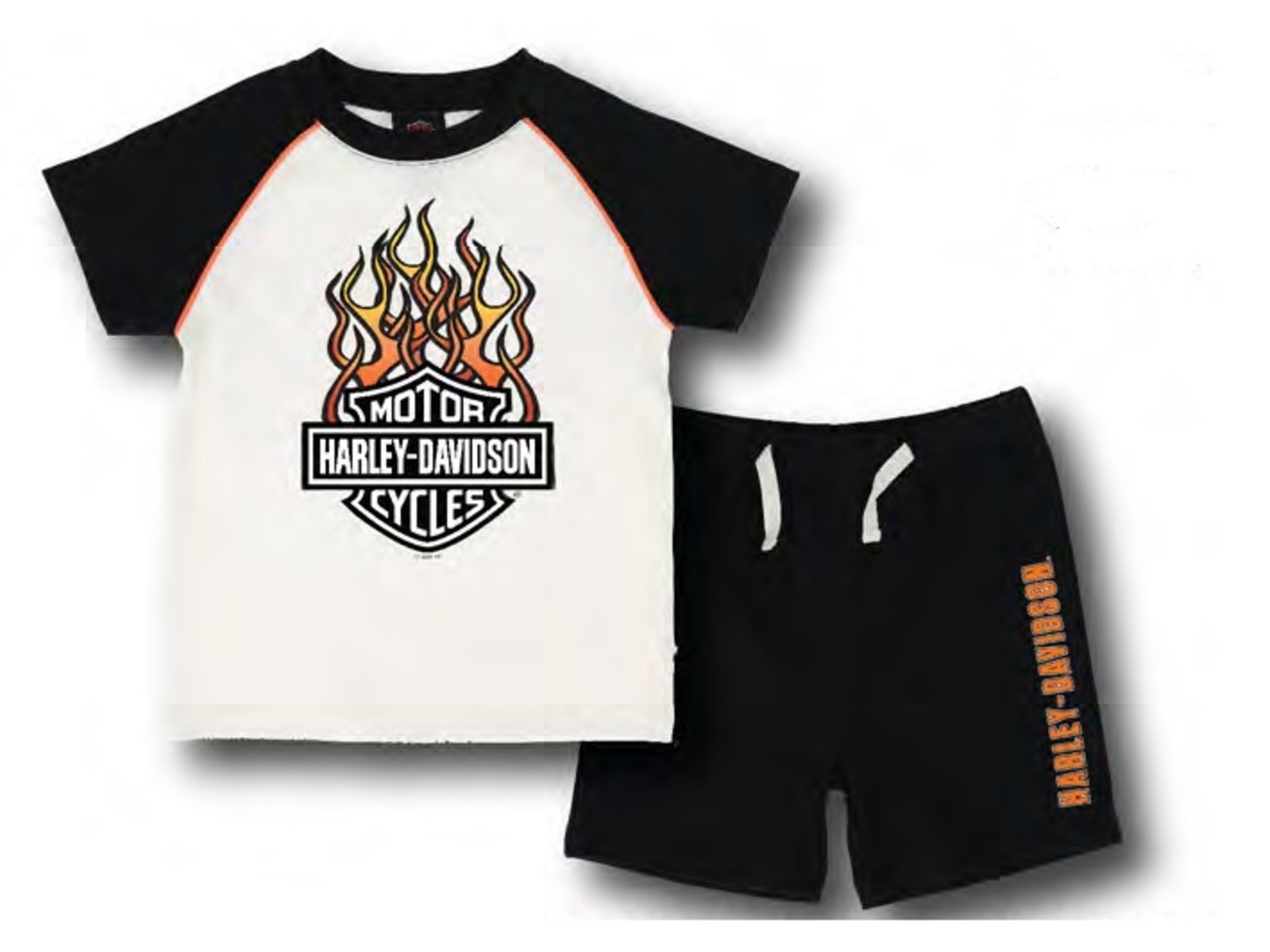 Mit dem "H-D Kids Flames" Set sind kleine Harley-Fans stylisch und bequem unterwegs – ideal für Freizeit und Abenteuer.