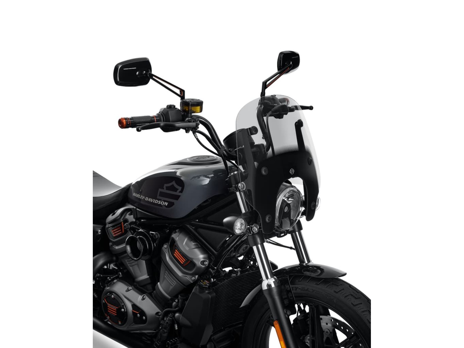 Windschutz mit sportlichem Stil. Diese abnehmbare Windschutzscheibe wurde speziell für das Nightster™-Modell entwickelt und kann schnell und einfach montiert oder entfernt werden, um den gewünschten Stil und Schutz zu erzielen.