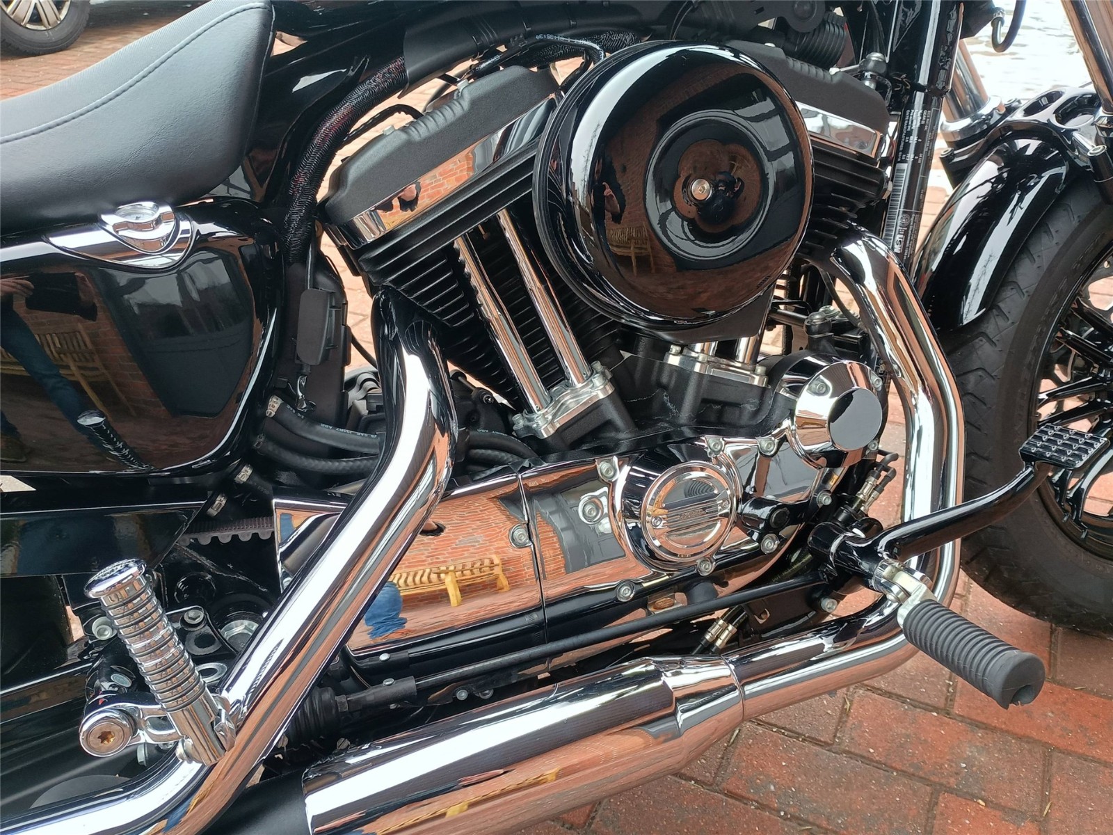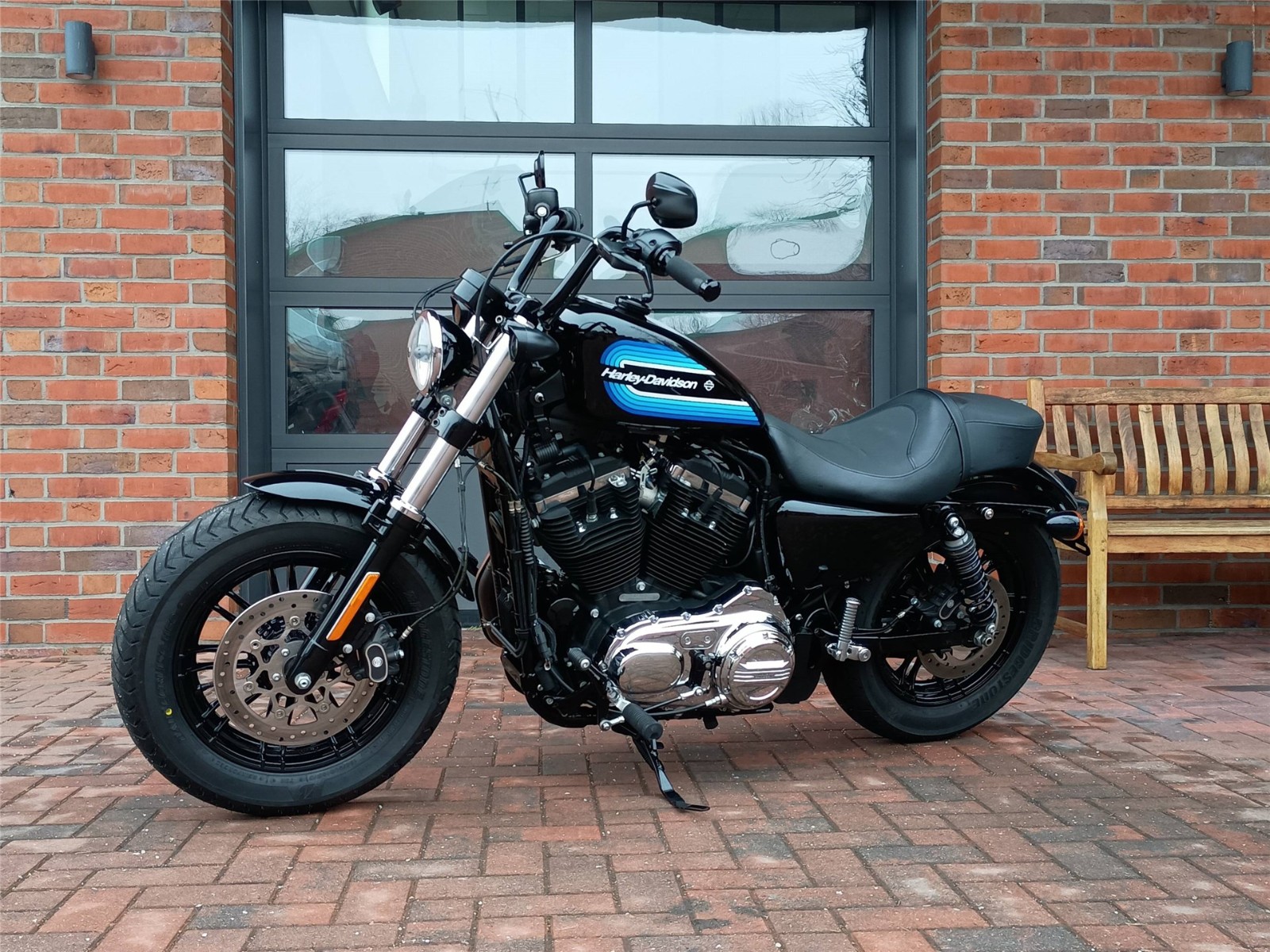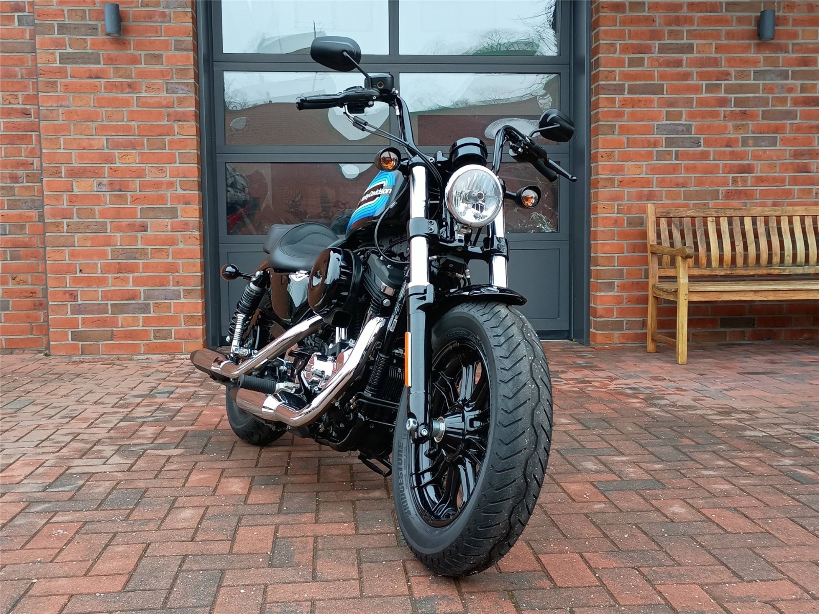 Das wuchtige Front End wirkt bei der Forty-Eight Special noch eindrucksvoller, da es von einem glänzend schwarzen und hohen Tallboy-Lenker gekrönt wird.