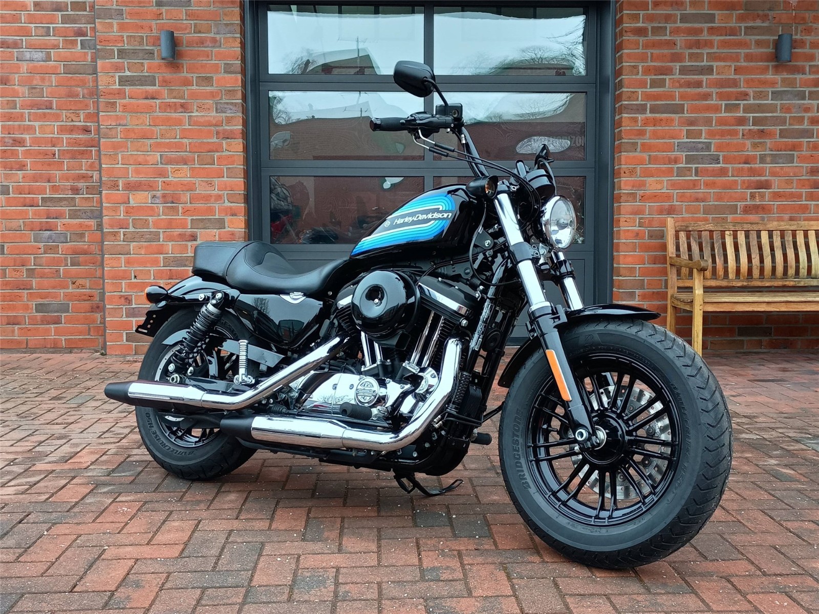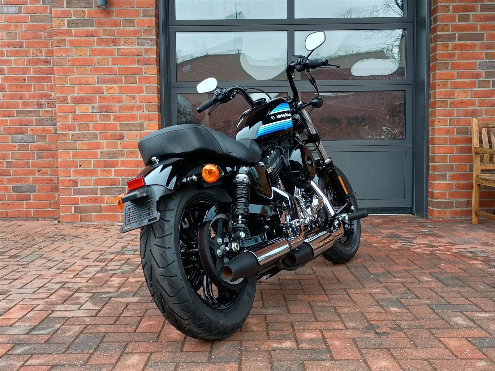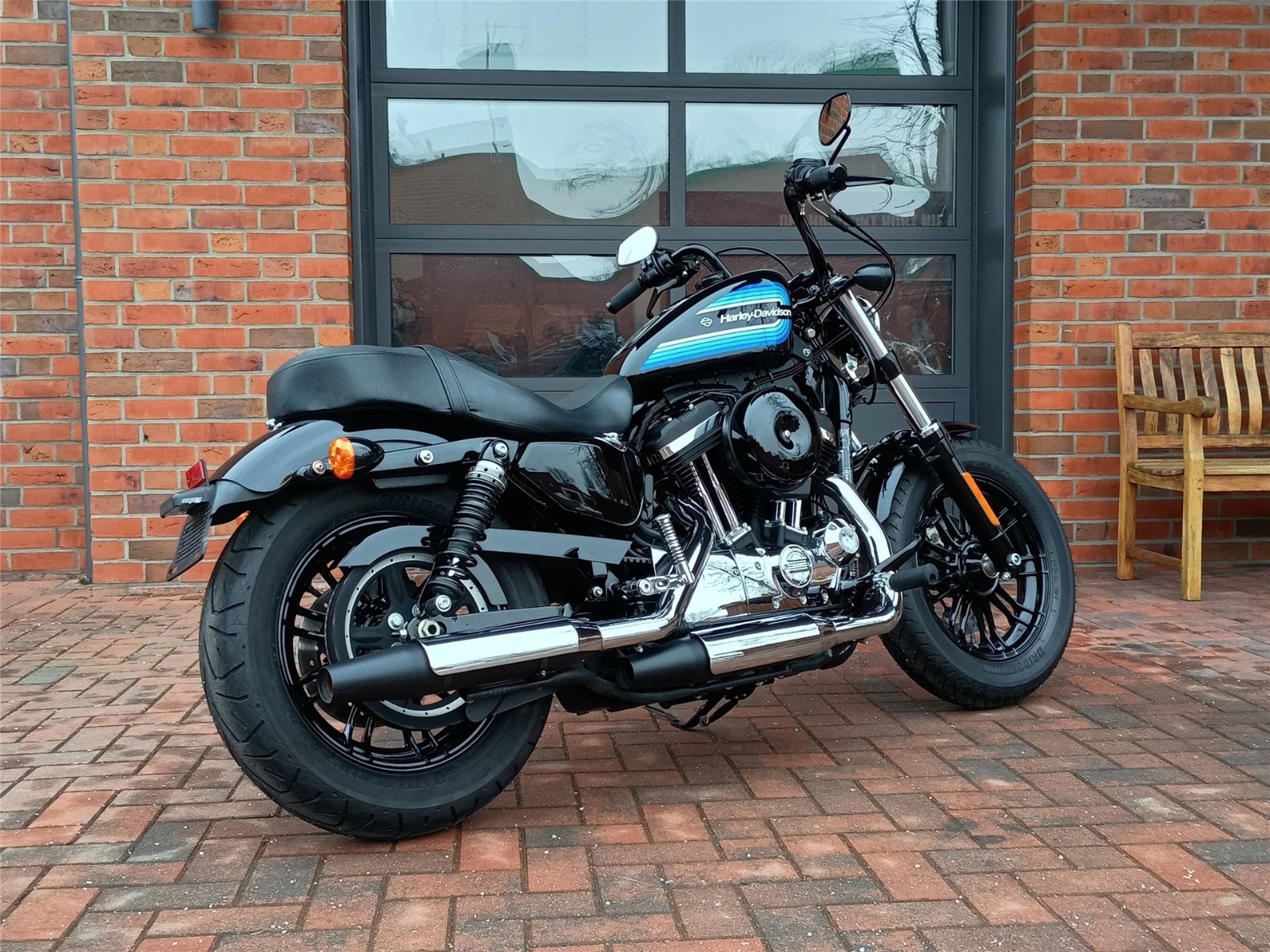 Das wuchtige Front End wirkt bei der Forty-Eight Special noch eindrucksvoller, da es von einem glänzend schwarzen und hohen Tallboy-Lenker gekrönt wird.