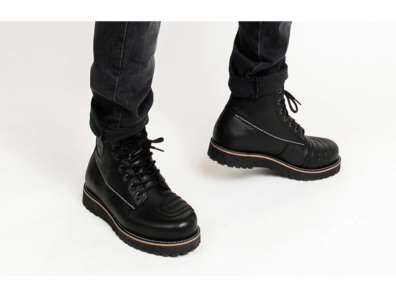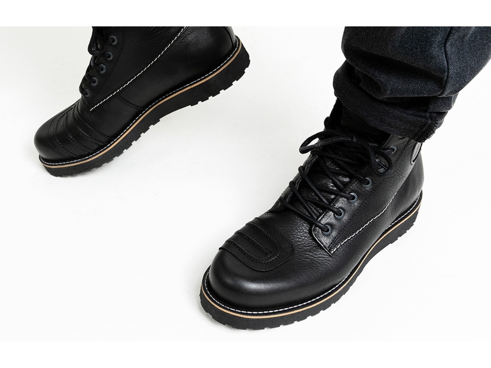 Unser Iron ist ein Schuh welcher speziell für das Motorradfahren entworfen wurde. Dieser klassische Stiefel verfügt natürlich über alle wichtigen Features die ein moderner Motorradschuh haben muss. Die hohe Funktionalität und den entsprechenden Schutz bei Extrembelastungen verdankt dieser Schuh der Kombination aus echtem Rindsleder und einen zusätzlichen XTM-Fiber ® Membran (Fasertechnologie aus DuPont ™ Kevlar® Coolmax® und Lycra®) .So bietet der Iron aus dem Hause John Doe zusätzlichen Abriebschutz im Vergleich zu einem gewöhnlichen Motorrad-Lederschuh.