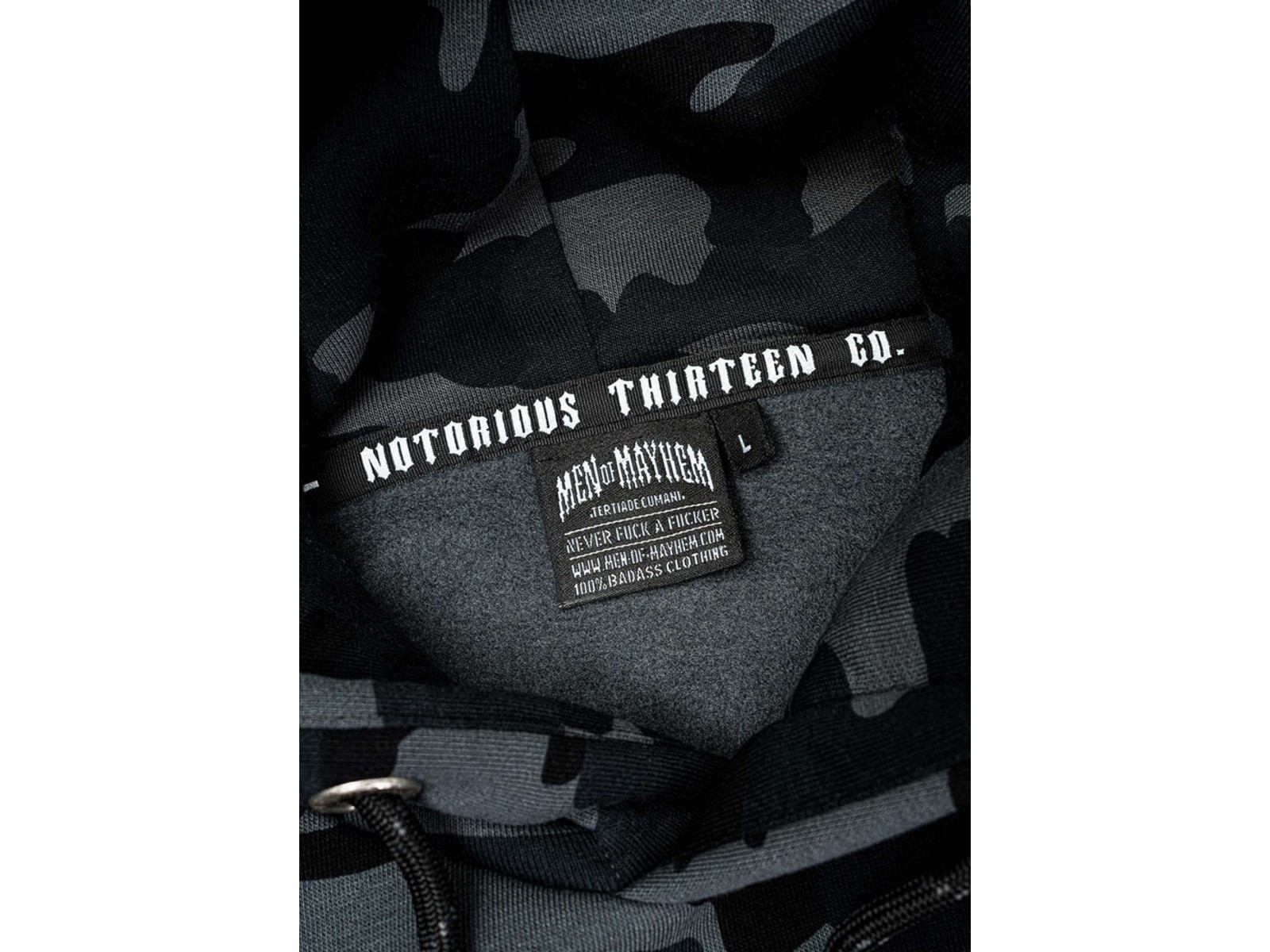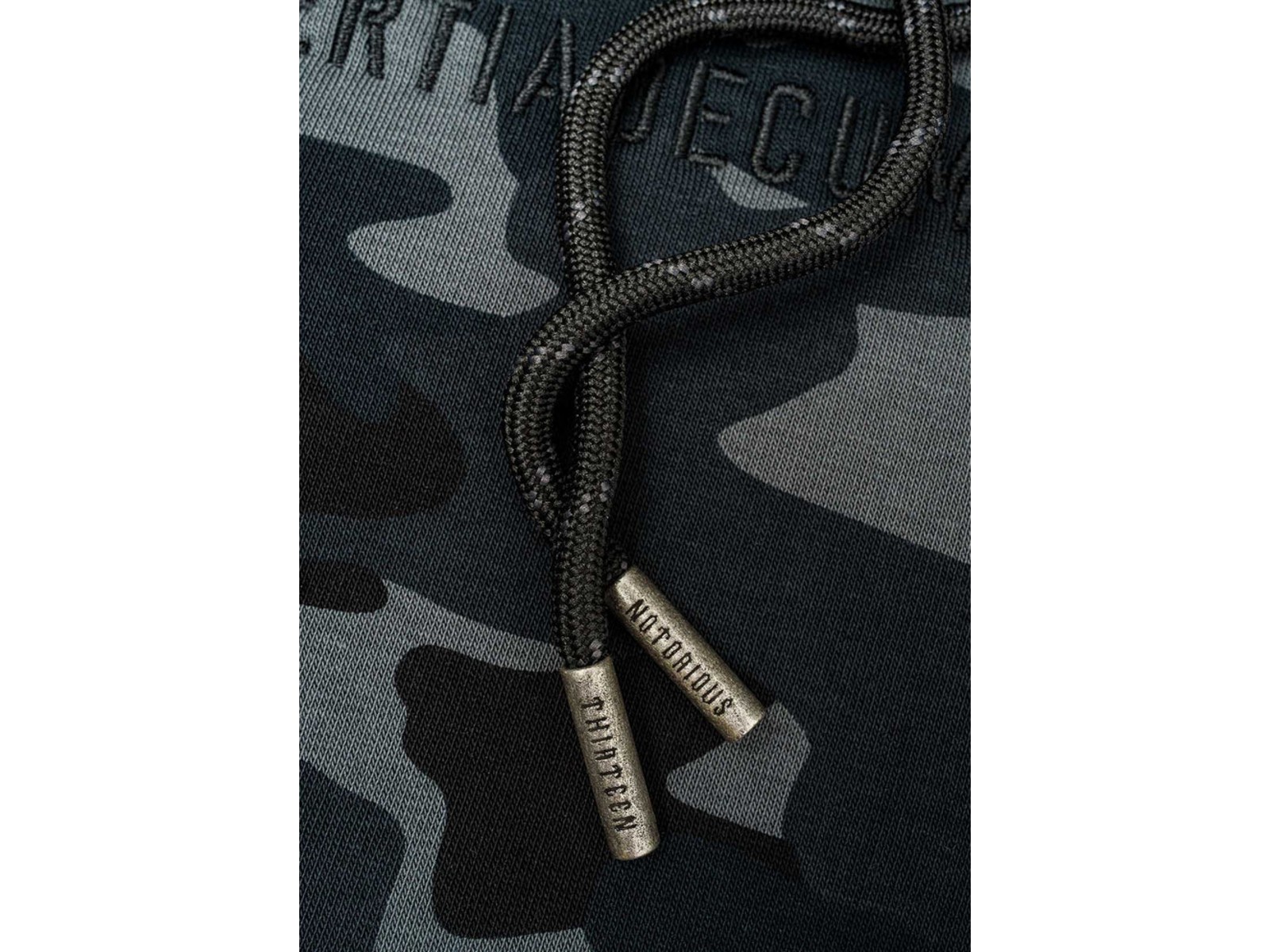 Auf der Brust befindet sich unser Classic Logo in Form eines hochwertigen Sticks, auf der Rückseite ist eine große 13 gestickt. Die Kapuze ist zusätzlich mit einem großen Mayhem Schriftzug versehen, ebenfalls als Stick.