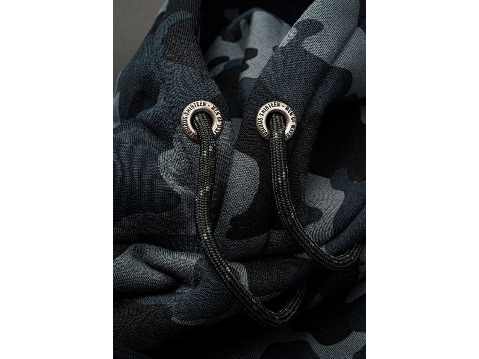 - Geprägte Metallkappen an den Kapuzenbändern