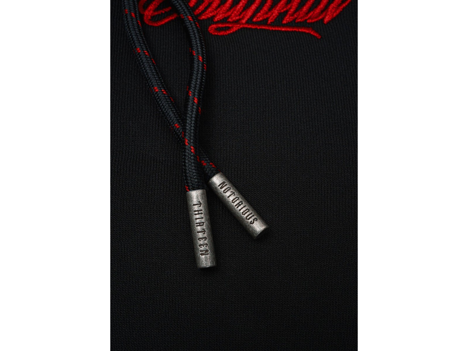 - Geprägte Metallkappen an den Kapuzenbändern