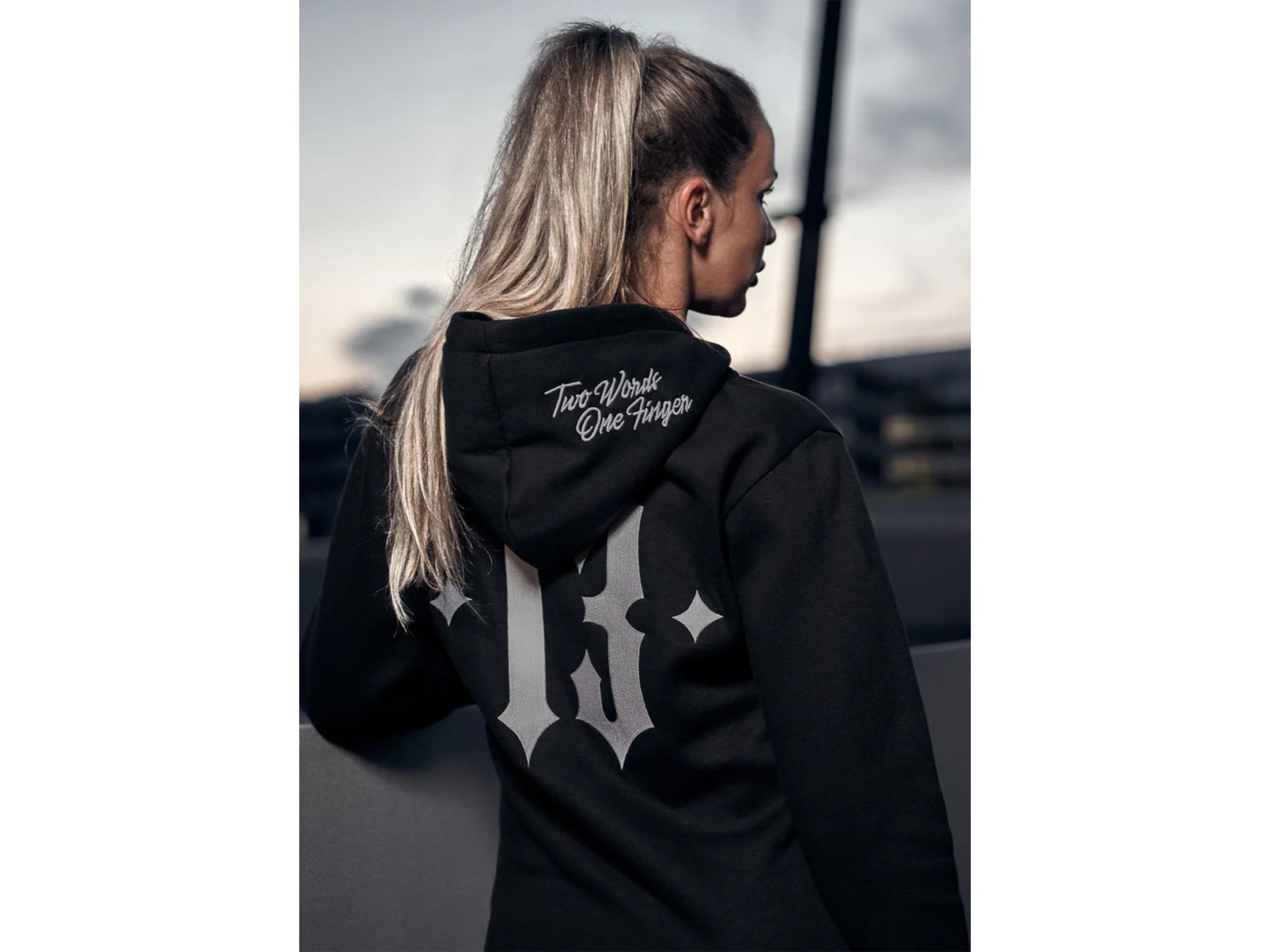 Die Two Words One Finger Hoodie Jacke überzeugt durch den angenehm weichen und dicken Stoff, in Kombination mit hochwertigen Stickarbeiten.