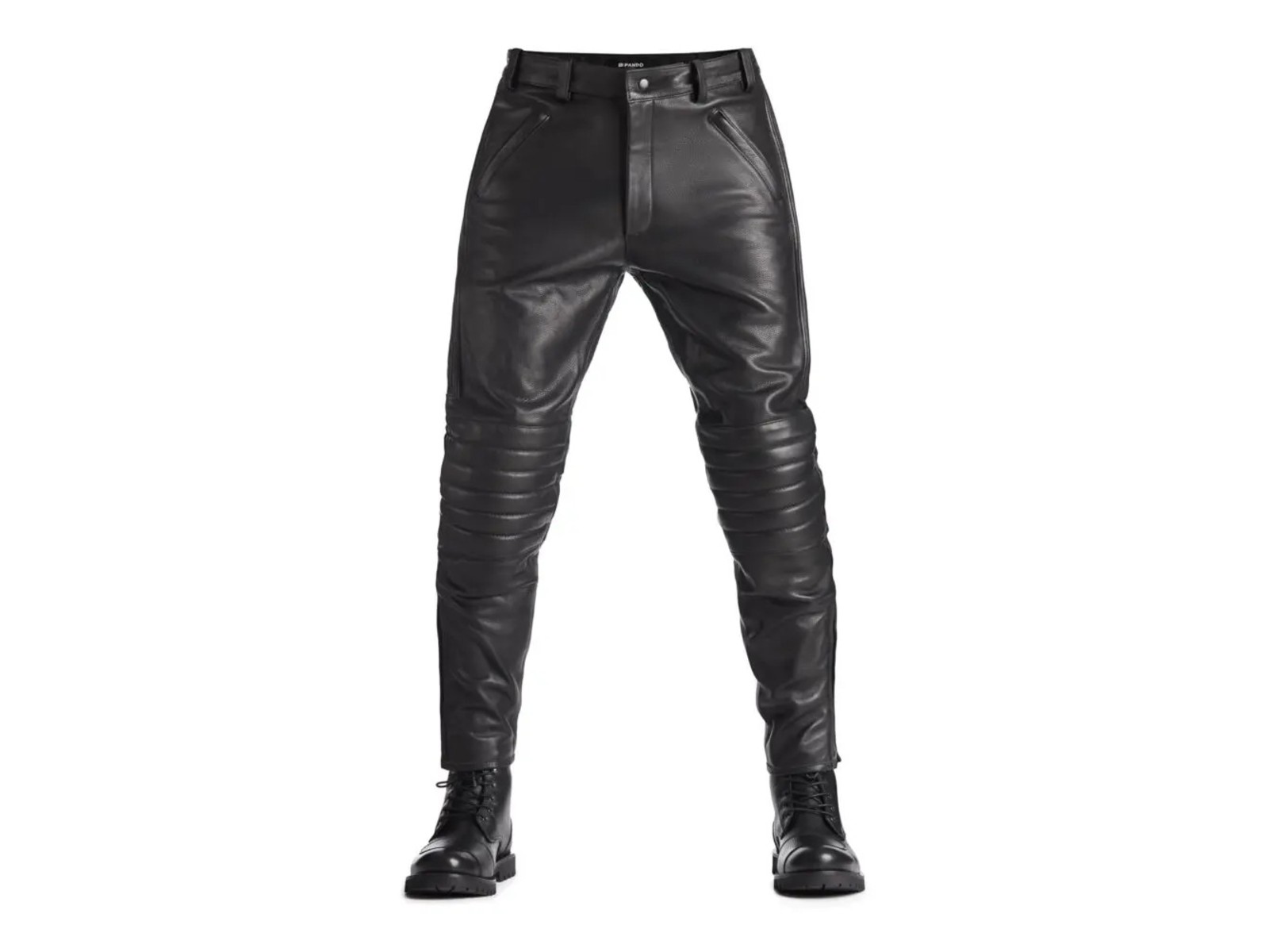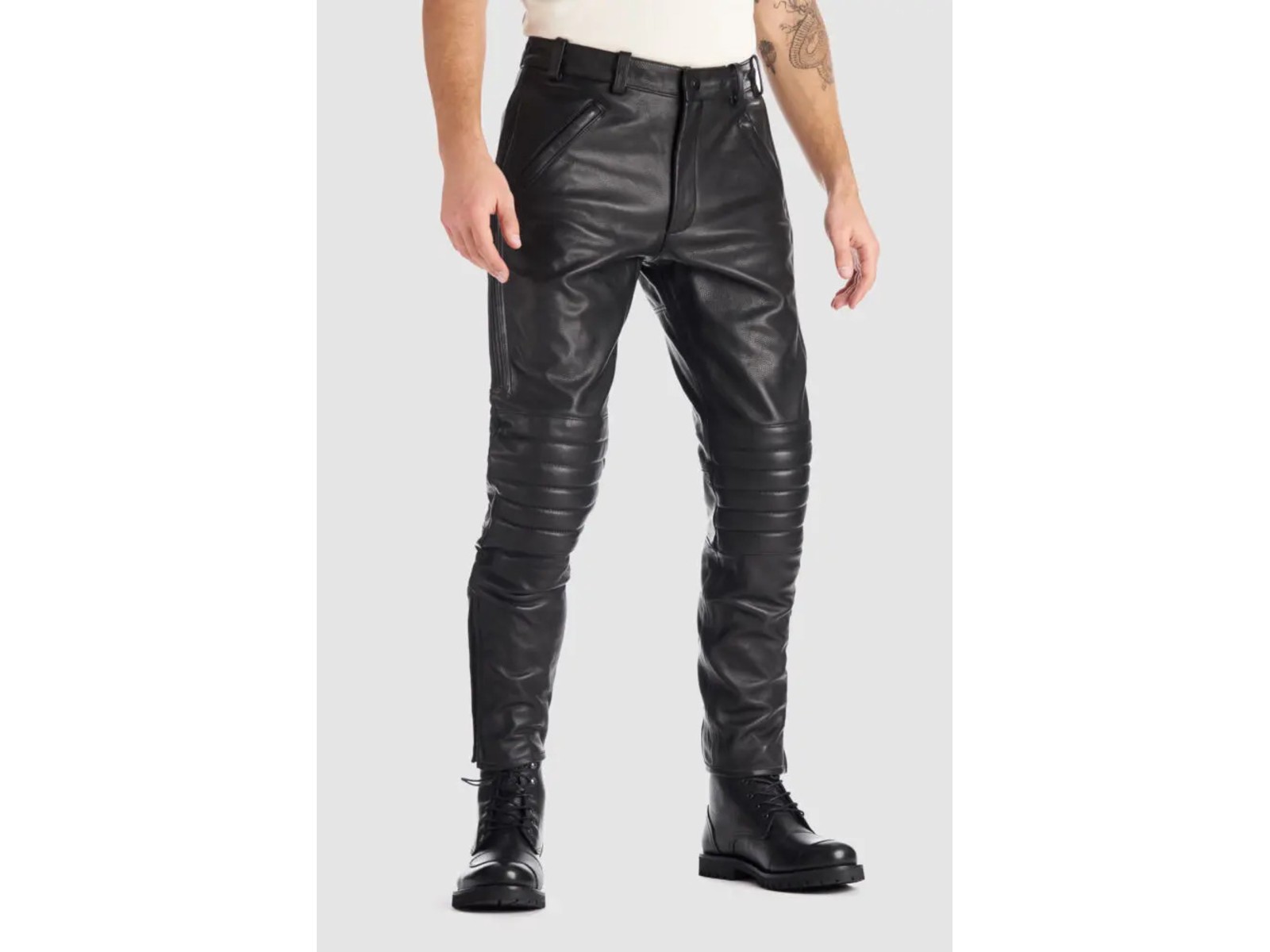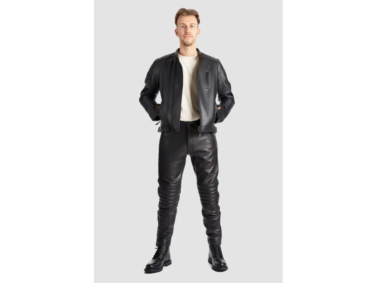 - Herren-Lederhosen, inspiriert von Vergangenheit und Zukunft. Hergestellt aus schwarzem Rindsleder mit einer Dicke von 1,2 mm.
