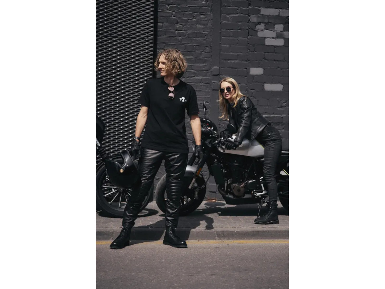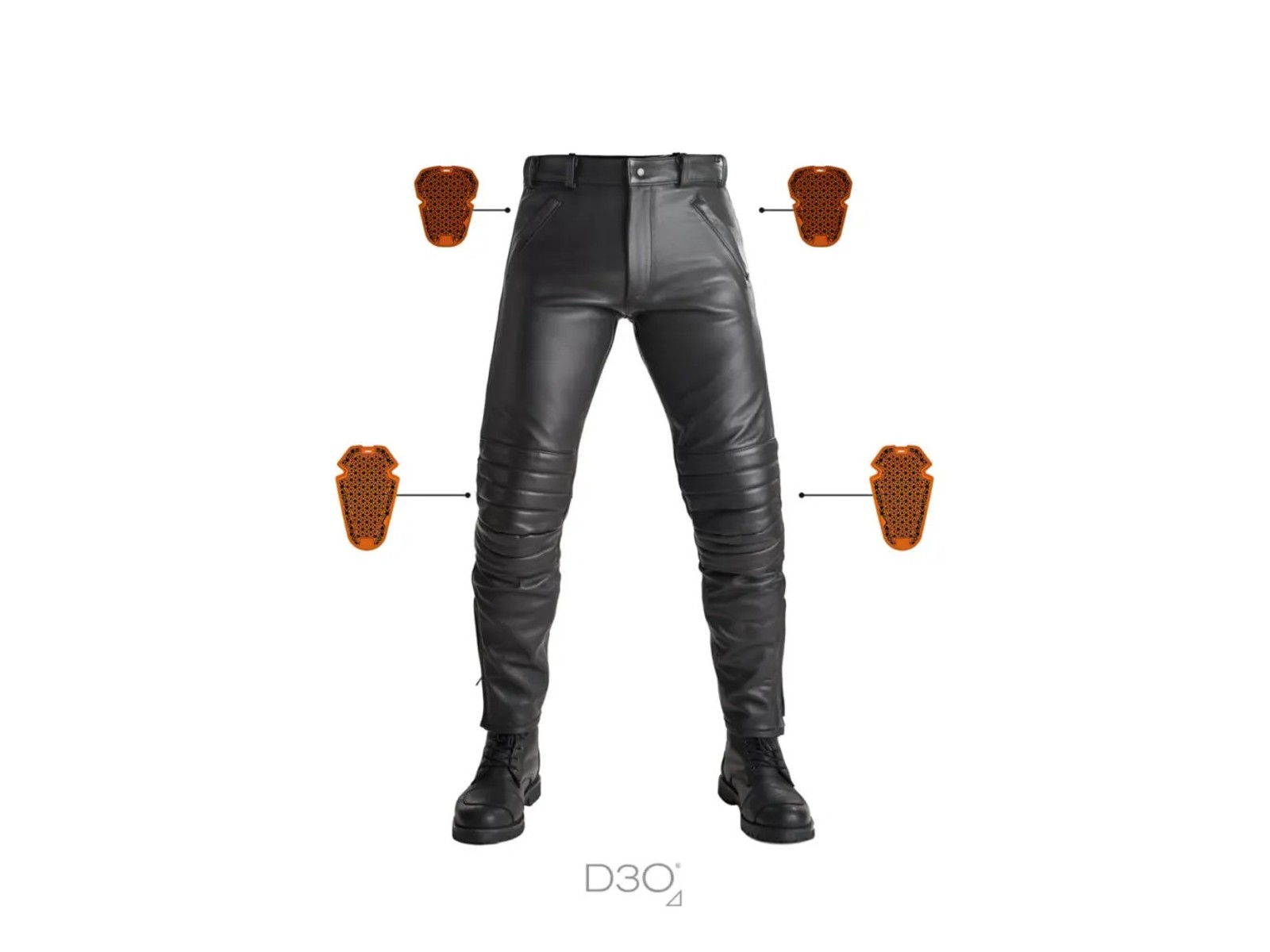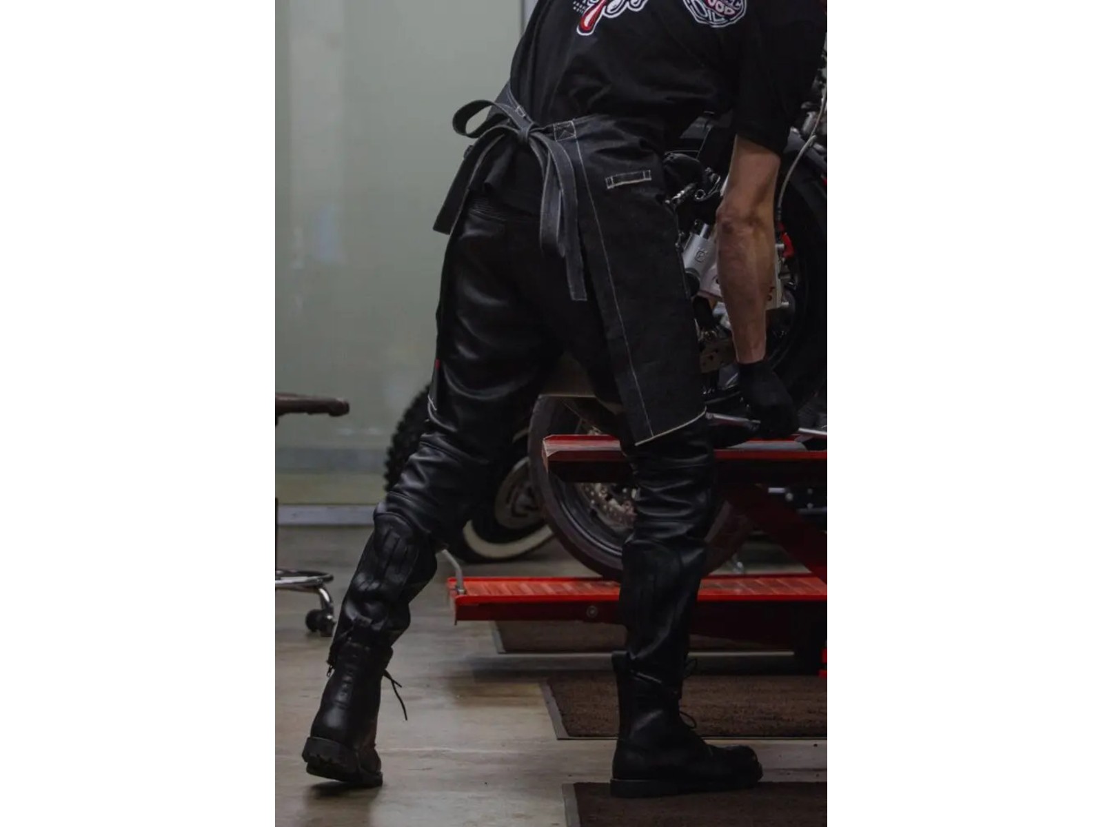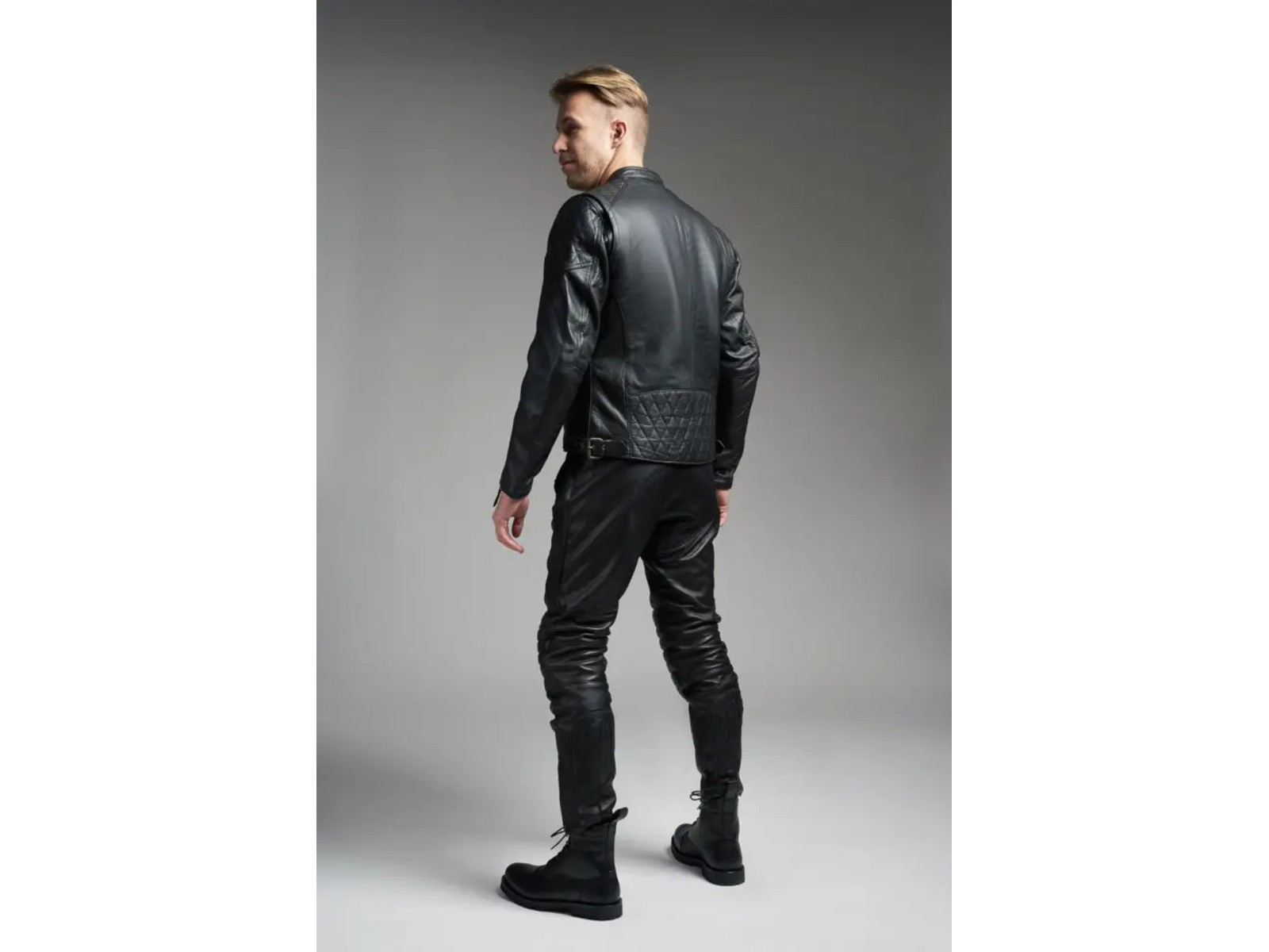 - Herren-Lederhosen, inspiriert von Vergangenheit und Zukunft. Hergestellt aus schwarzem Rindsleder mit einer Dicke von 1,2 mm.