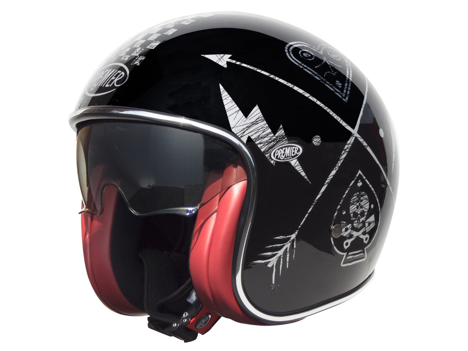 Der Vintage Helm ist gemacht für alle, die einen modebewussten, stylischen und funktionellen Jethelm möchten. Er zeichnet sich durch klassisch schöne Grafiken aus, ohne die Sicherheitserfordernisse zu vergessen. Die Schale des Motorradhelmes besteht aus einem Tri-Composite-Mix, mit Dyneema, Carbon- und Aramid-Fasern. Dies ist die gleiche Fasermischung, die Premier bei allen Helmen verwendet. Die innere EPS Schale mit variierender Dichte sorgt für die beste Dämpfung im Falle eines Unfalles. Der Jet Vintage besitzt eine einfach zu bedienende integrierte Sonnenblende, welche als kleines Visier zu verstehen ist, dies ist zwischen der inneren und der äußeren Schale platziert. Die Wangenpolster sind mit antiallergischem Sanitized-Gewebe gefertigt und sind komplett herausnehmbar sowie waschbar. Der Kinnriemen verfügt über einen mikrometrisch regulierbaren Schnellverschluss.