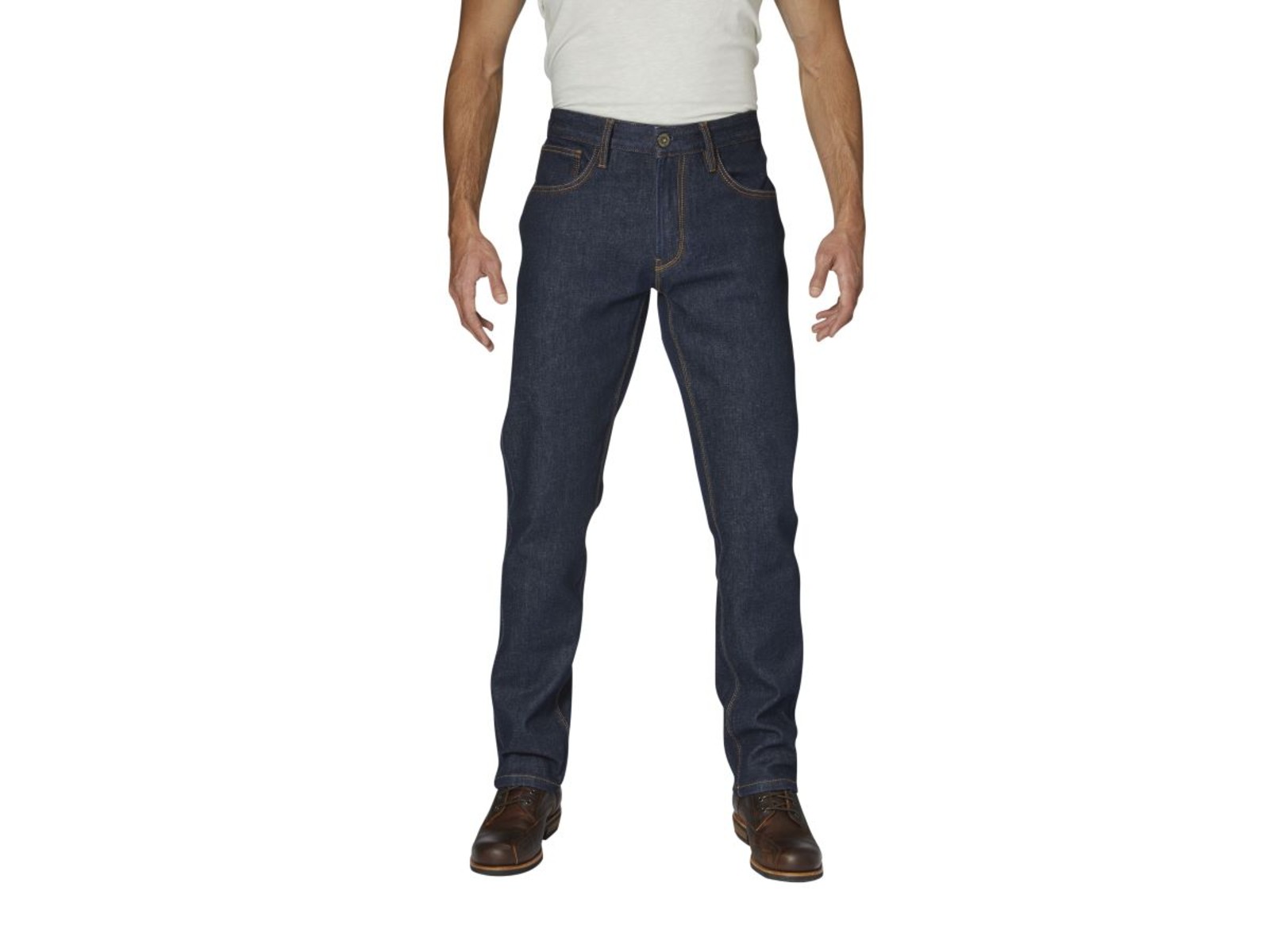 Hochabriebfeste, einlagige und wasserdichte Motorradjeans bestehend aus der revolutionären Kombination aus schoeller®-dynatec, UHMWPE Fasern und Denim mit wasserdichtem Reissverschluss und versiegelten Nähten Extrem abriebfest mit authentischer Raw Jeans Optik