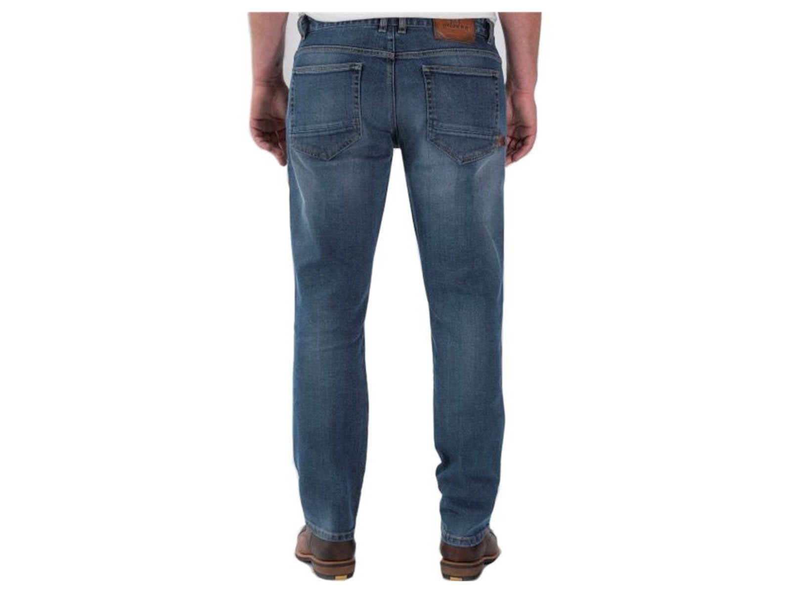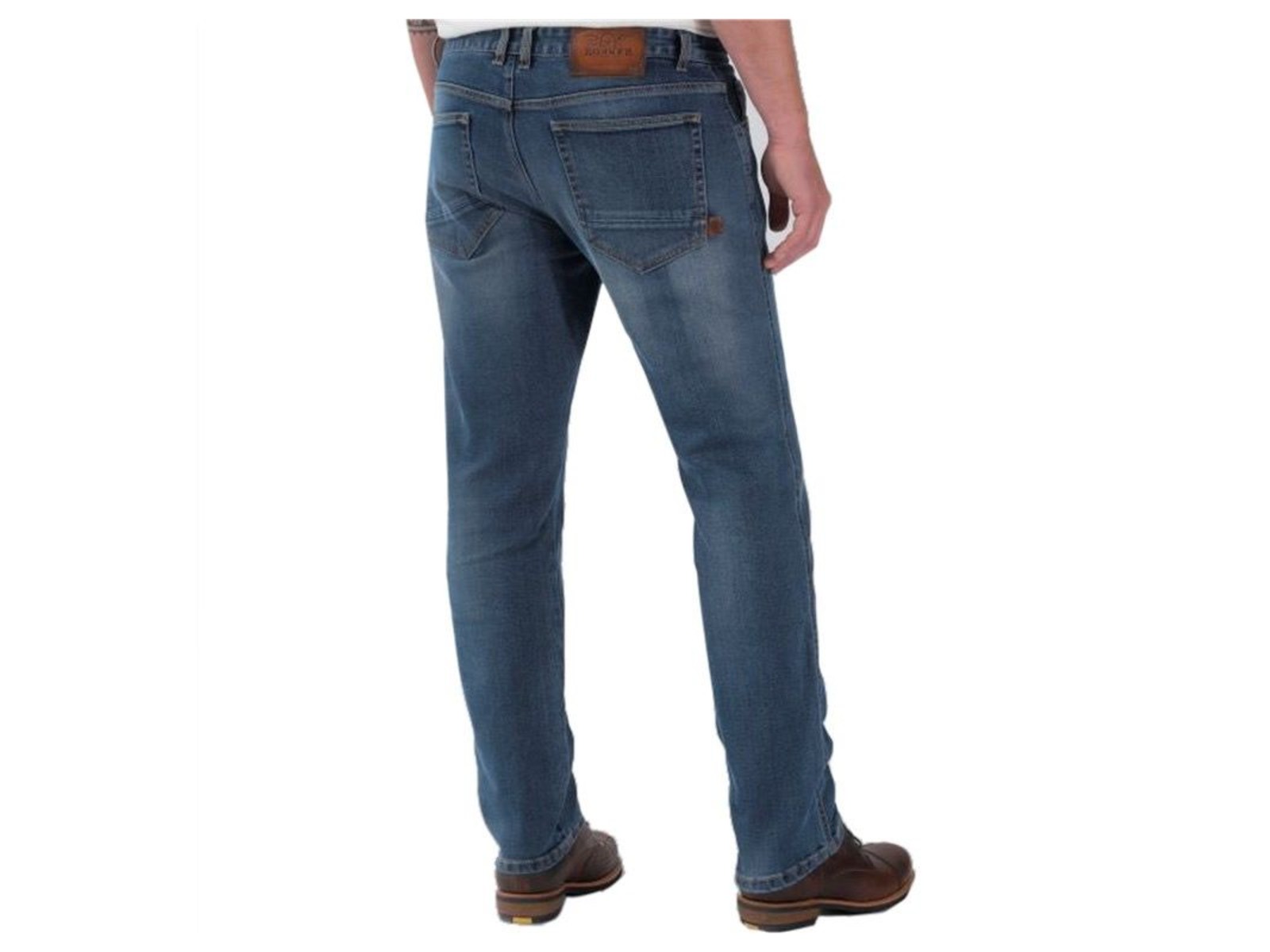 - Material: Edler 12 oz washed Blue Stretch-Denim mit hochabriebfesten UHMWPE-Fasern (61% Baumwolle, 19% Polyethylen, 11% Polyamid, 8% Elastomultiester, 1% Elasthan)