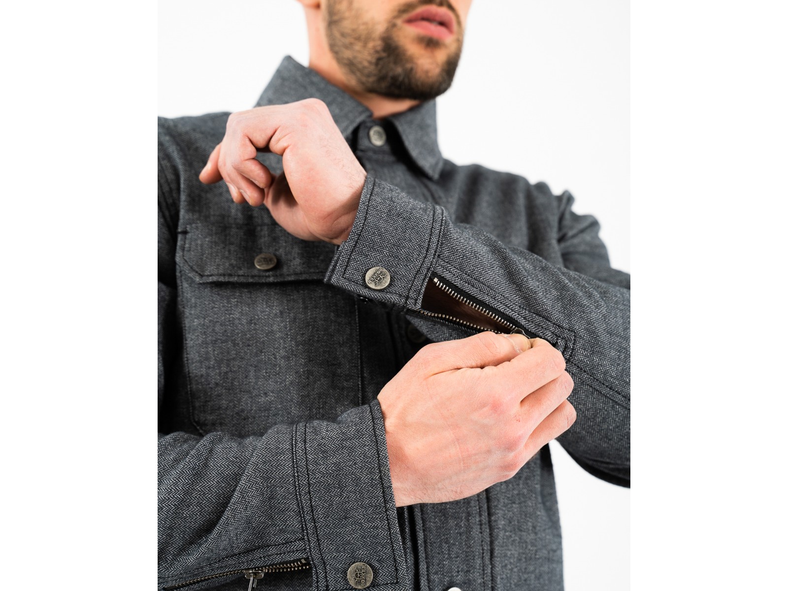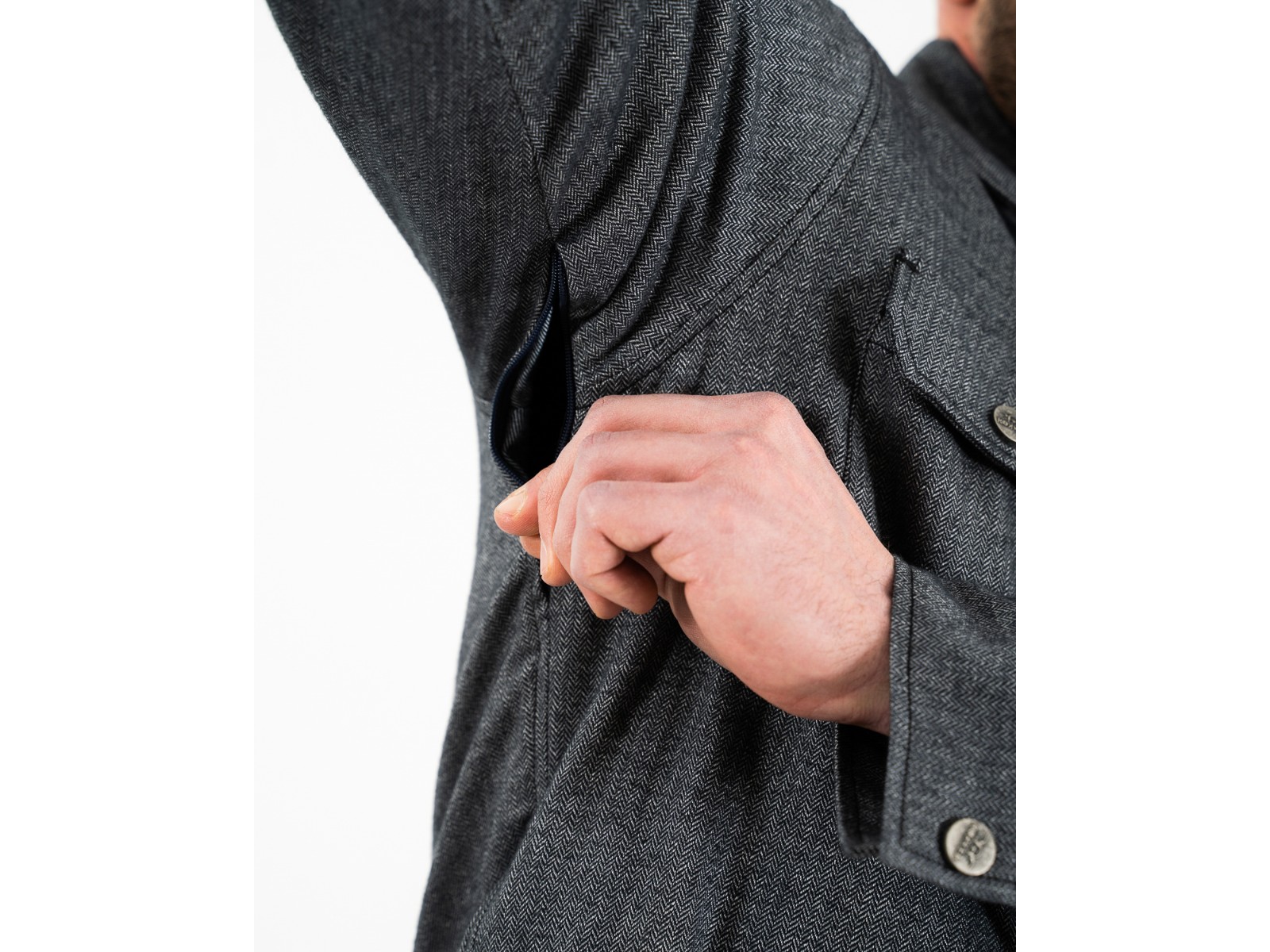 Zwei Brusttaschen und Reissverschluss am Ärmel